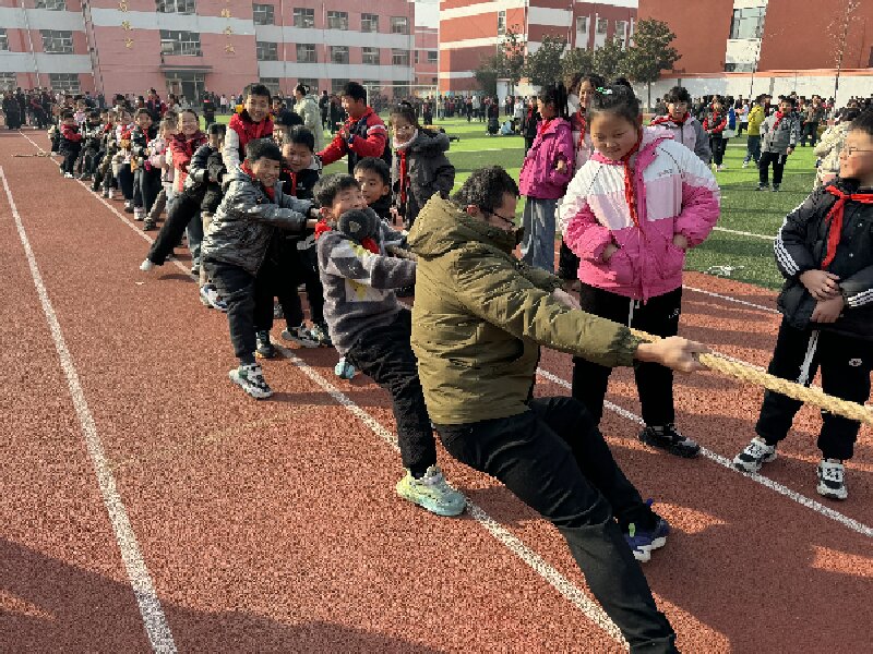 年终岁尾,为进一步丰富校园文化生活,营造积极向上、百花齐放、健康文明的校园氛围,增强学生的体育锻炼意识,发扬团队精神,培养集体荣誉感,12月23日和24日,山东省临沂市河东区刘店子中心小学举行了别开生面的拔河比赛。该图片为拔河比赛精彩现场。