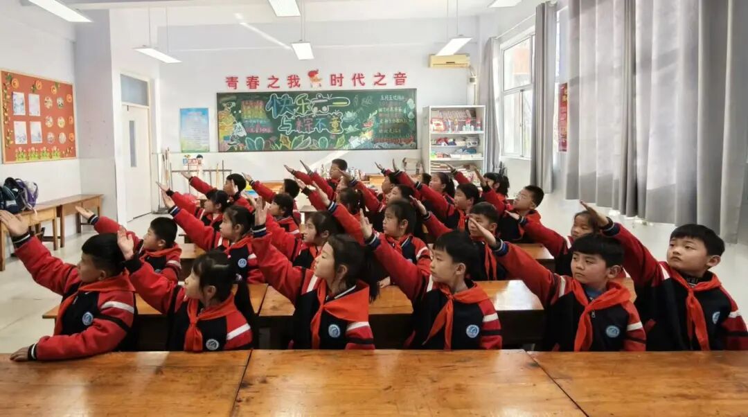 低年级的孩子们用“和平祈愿”手势舞表达心声。孩子们稚嫩的脸庞上满是郑重,小小的手势里藏着对祖国的无比热爱。他们用最纯粹的方式诉说着“珍爱和平”的心愿,展现了少年儿童纯真向上的精神风貌。