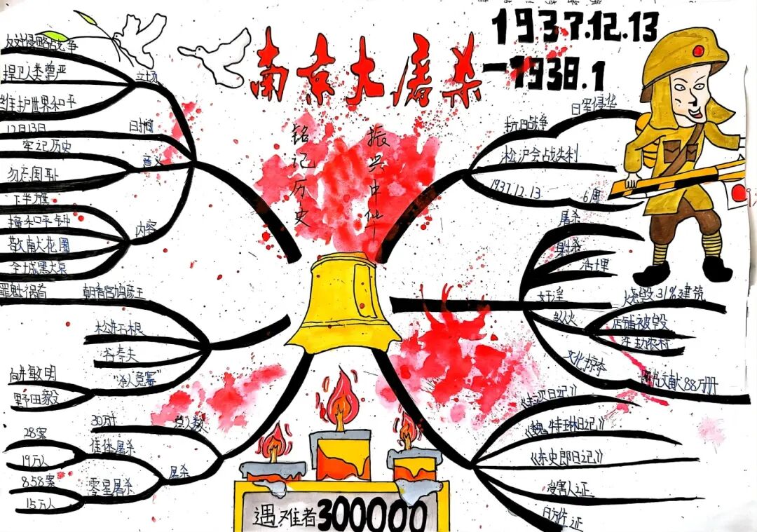 一份历史小报,一张思维导图,同学们以多样的形式梳理历史脉络、重现那段苦难与抗争的岁月。不拘一格的创作里,是对历史的深刻认知,是对先烈的深切缅怀,更是“振兴中华”的信念在少年心中的悄然生长。