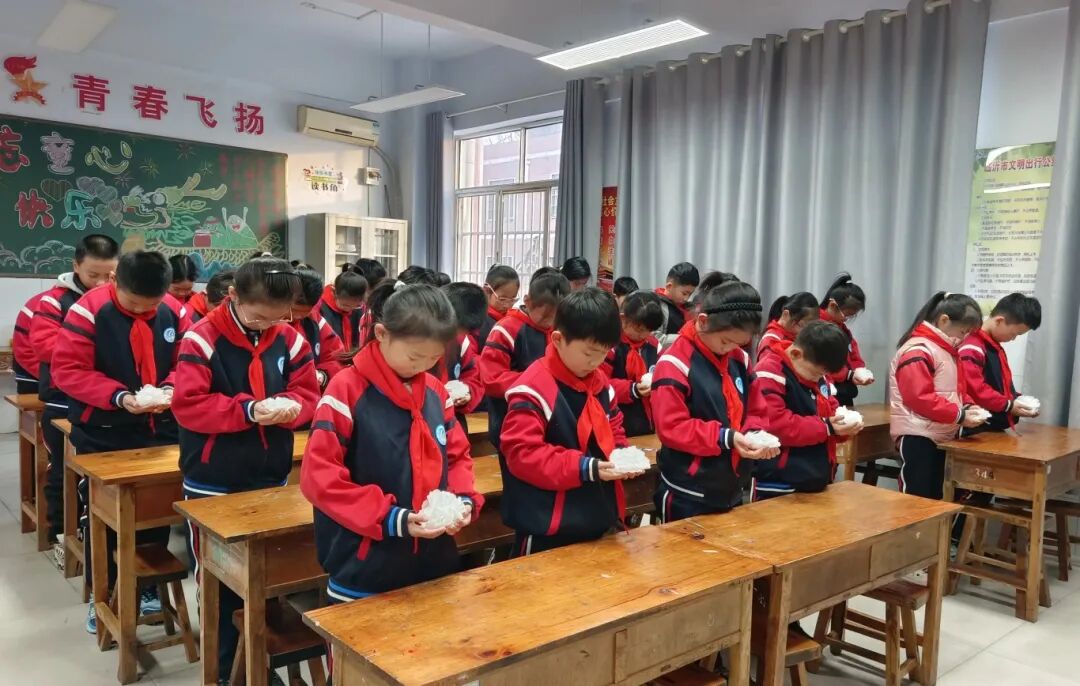 “白花致哀,庄严肃穆,丹忱抒写,和平诗章。”班会最后,全校学生亲手制作小白花,朵朵素白的花朵在稚嫩的掌心凝聚着哀思。当全体师生肃立默哀,校园里静无声息,唯有对遇难同胞的追思、对历史的敬畏、对和平的珍视在空气中流淌。