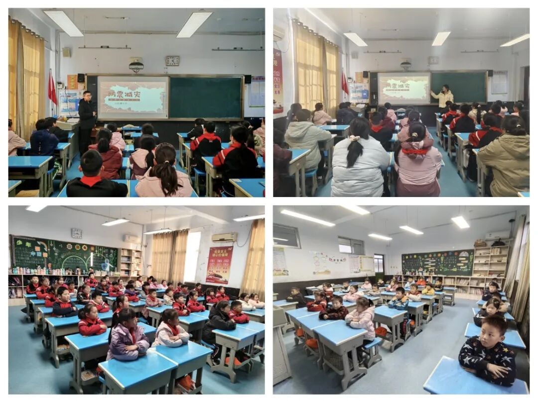 演练开始前,各班教师通过投影课件向学生系统讲解地震发生时的正确避险方法。从“伏地、遮挡、手抓牢”的室内避险要点,到撤离时的注意事项,学生们认真聆听,为接下来的实操演练打下了扎实的理论基础。