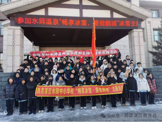在齐齐哈尔市“畅享冰雪爱上鹤城”冰雪研学活动的指引下,12月25日,昂昂溪水师中学校关工小组组织七年组与八年组师生奔赴水师森林温泉研学基地,开启了一场集趣味、研学、协作于一体的冰雪之旅,在冰天雪地里留下了一串串欢乐的足迹。 各班师生在操场整齐列队,班主任仔细清点人数、检查保暖装备,安全保障组认真核查急救物资,为研学之行筑牢安全防线。校领导的动员讲话字里行间满是对同学们的期待与叮嘱,点燃了大家奔赴冰雪世界的热切之心。