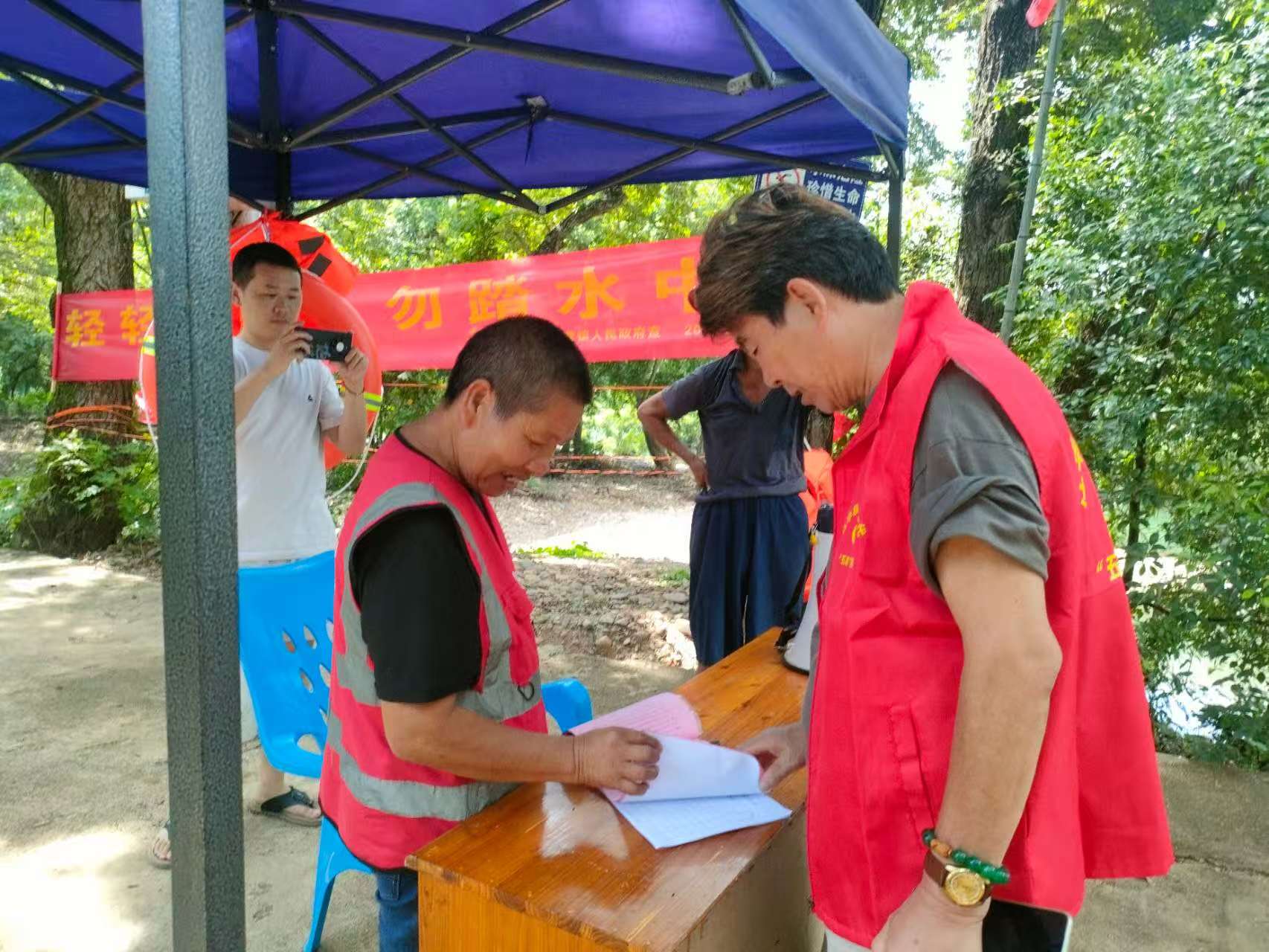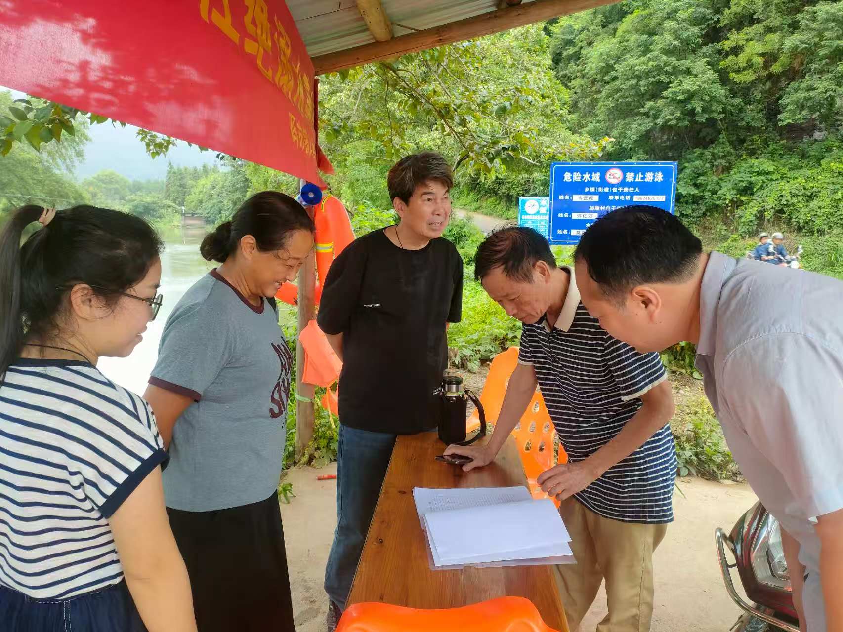 二、抓水域巡查,防隐患盲区,常态监管到位:建立“1+3+N”巡查模式,238处重点水域配救援设备,整改隐患67处。