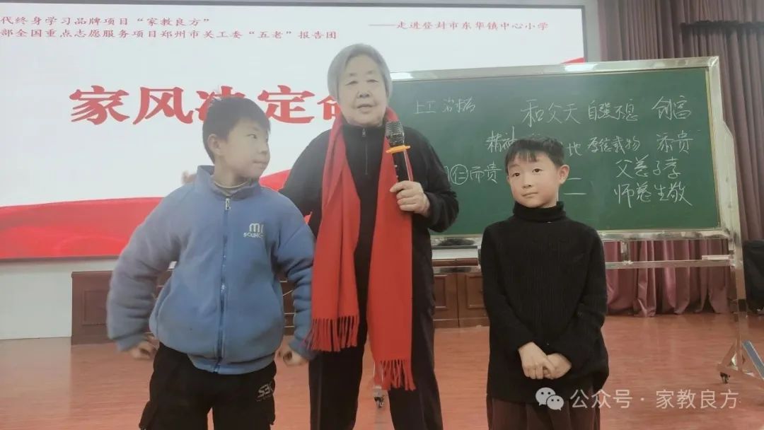 2025年2月8日下午,家教良方发起人周慧玲走进了登封市东华镇中心小学,为大家带来一场“家风决定命运”的主题的精彩报告。讲座伊始,周老师以“幸福人生三件事——干好工作、过好日子、养好孩子”为切入点,深入浅出地阐述了家庭教育在孩子成长过程中的关键作用。