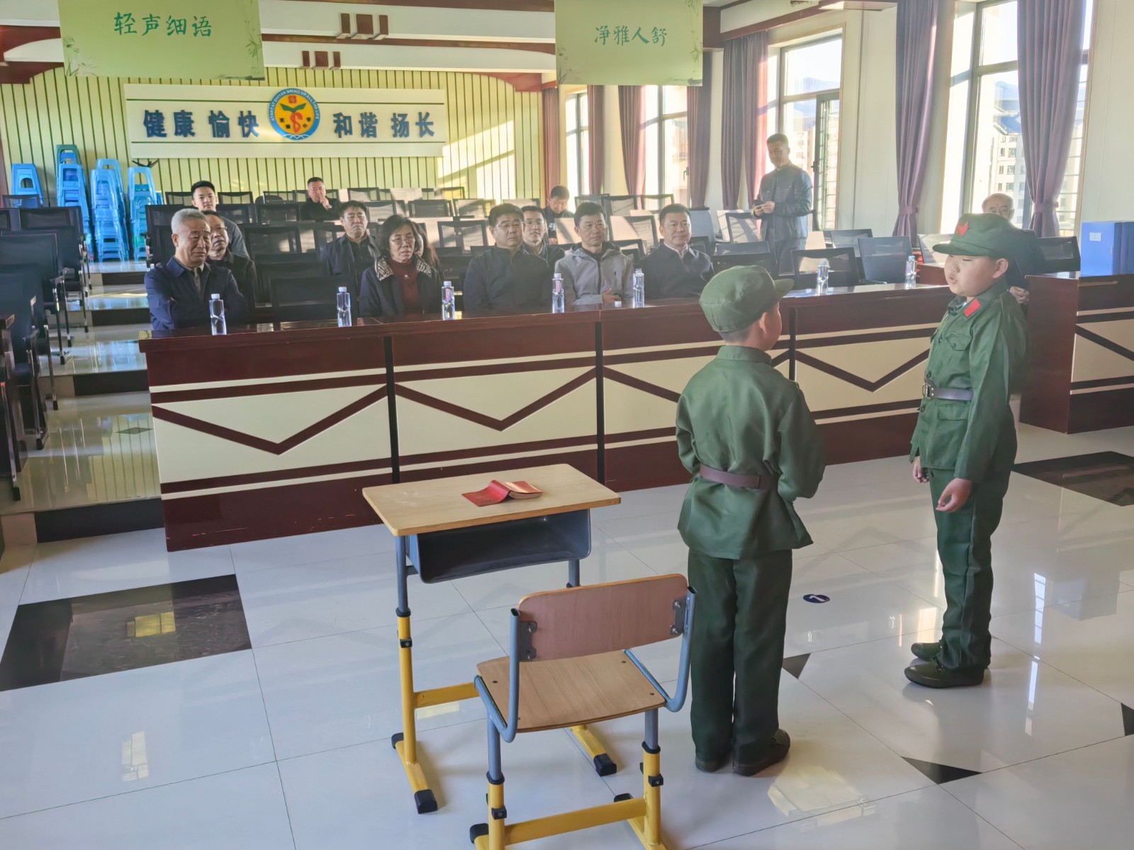 随后,赵满主任一行前往本溪桓仁满族自治县进行调研,在桓仁县实验小学,查阅学校关工委工作档案,观看校园红色文化遗址及红色文化展示,并现场观摩了该校小学生表演的雷锋故事舞台剧演出。