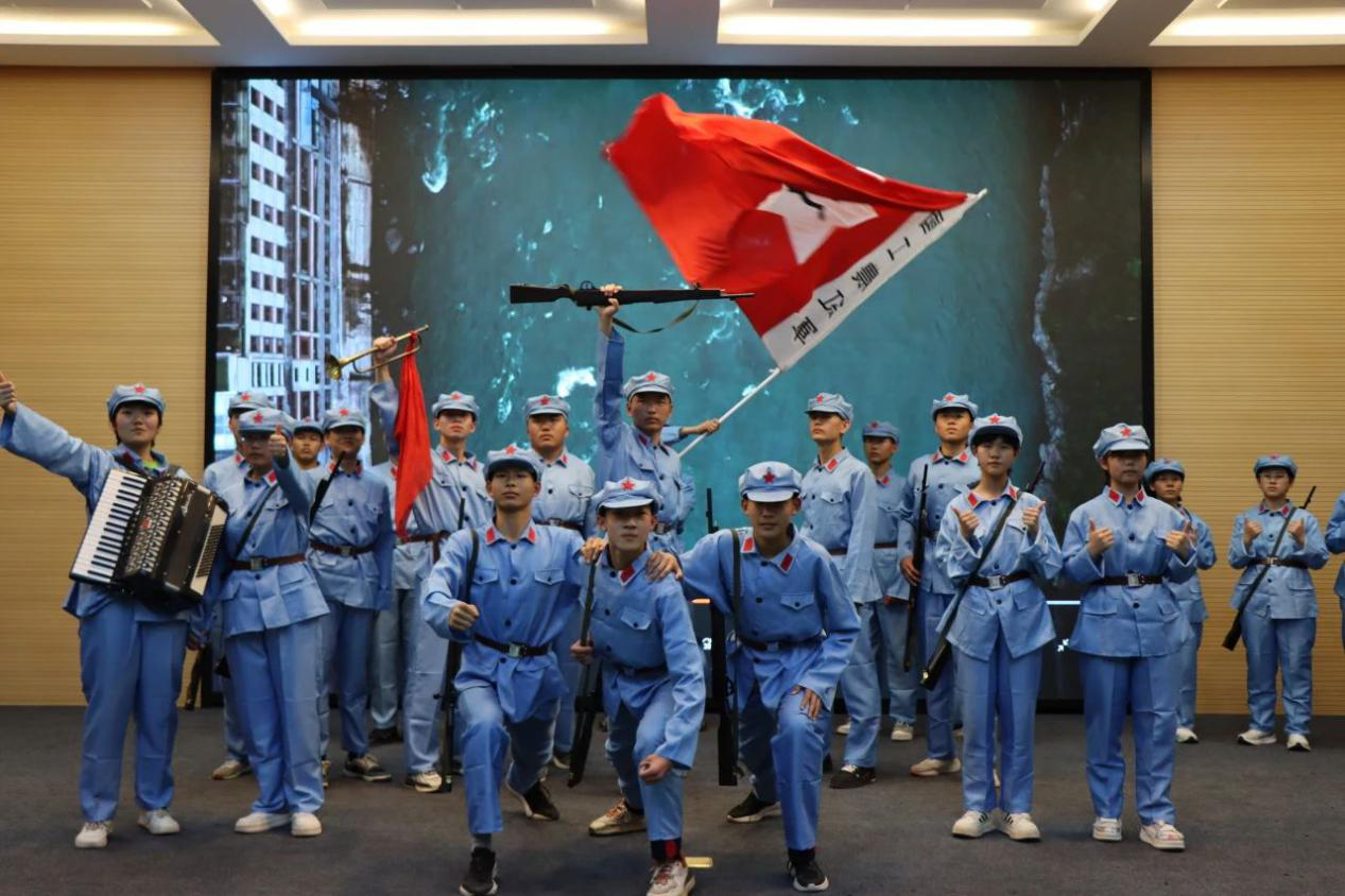 随后,同学们为家长展示了才艺表演。舞台剧《四渡赤水出奇兵》以恢弘的叙事展现了历史的力量;女生们充满活力的舞蹈表演彰显了青春的热情;而全体学生共同吹奏的葫芦丝曲目《军港之夜》,则以悠扬的旋律传递了文化的传承与集体的凝聚力。