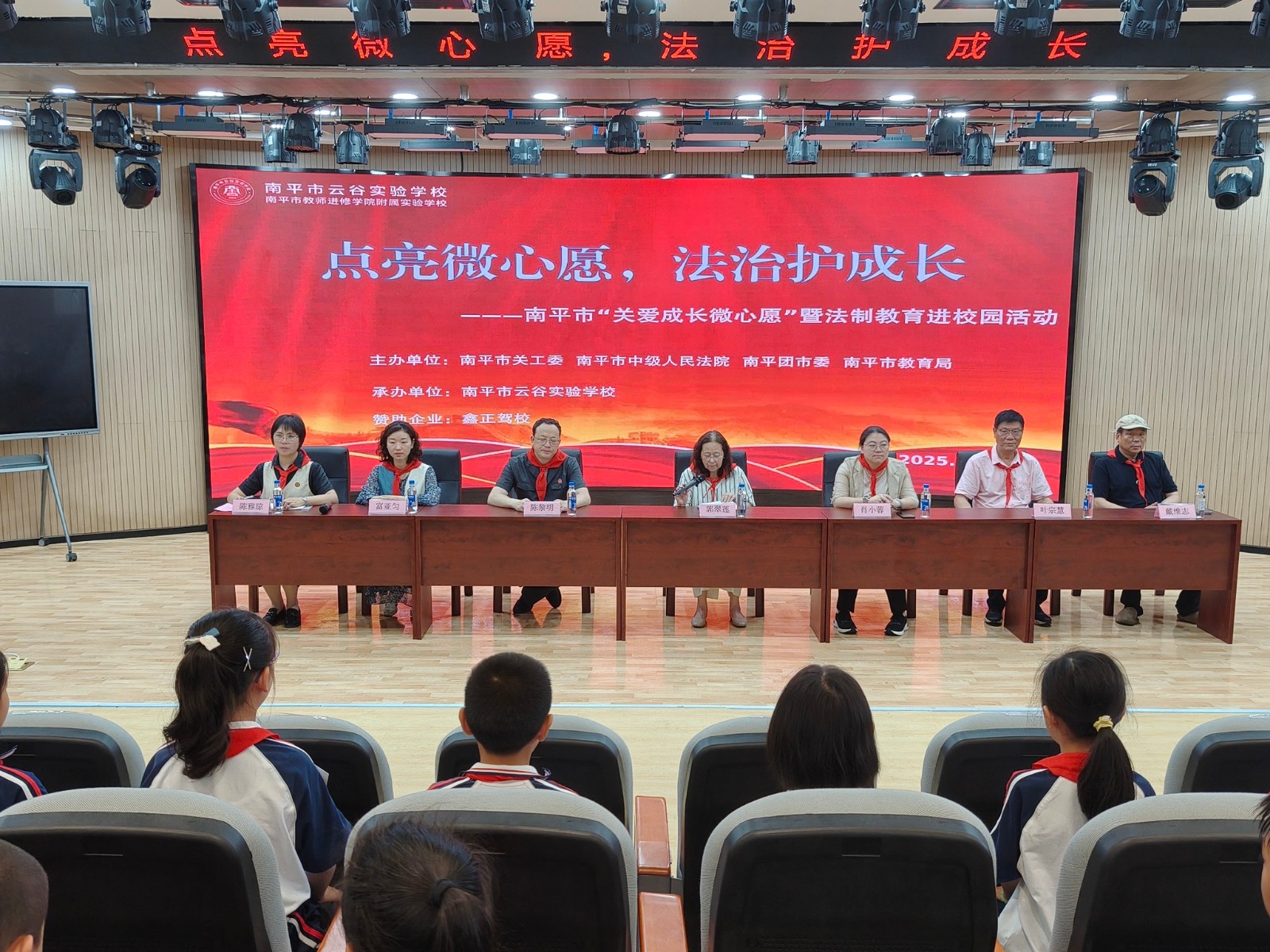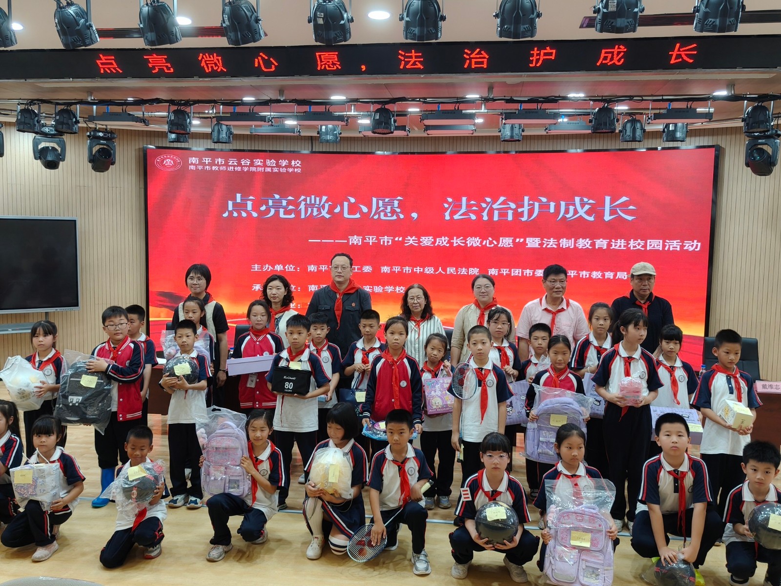 5月22日,在六一儿童节前夕,南平市关工委、市中院、团市委、市教育局联合在南平云谷实验学校开展“点亮微心愿,法治护成长”活动,为孩子们送上节日礼物,市关工委、市中院等相关领导及近200名学生参与。
