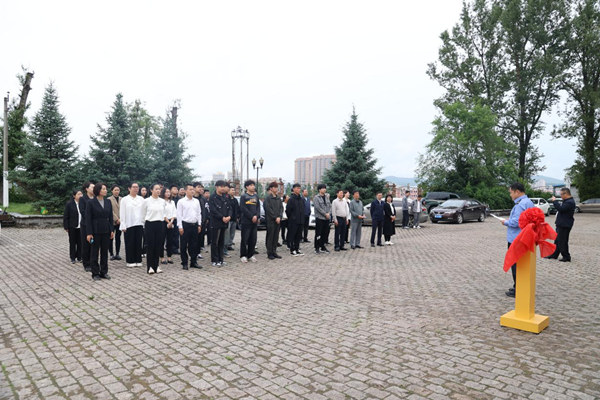在全体与会人员的注目下,郭书亮、付国忠共同为基地揭牌。付国忠同志在致辞中深情回顾了大白楼承载的厚重历史,他强调指出:“这座矗立在绥芬河站区的百年大白楼,深深镌刻着红色基因,是共产党人奋斗历程的鲜活见证,更是铁路人爱党爱国、无私奉献的精神丰碑。绥芬河站将以此基地为重要依托,引导铁路青年传承光荣传统,在服务‘一带一路’和推动铁路高质量发展的新征程中贡献青春力量。”