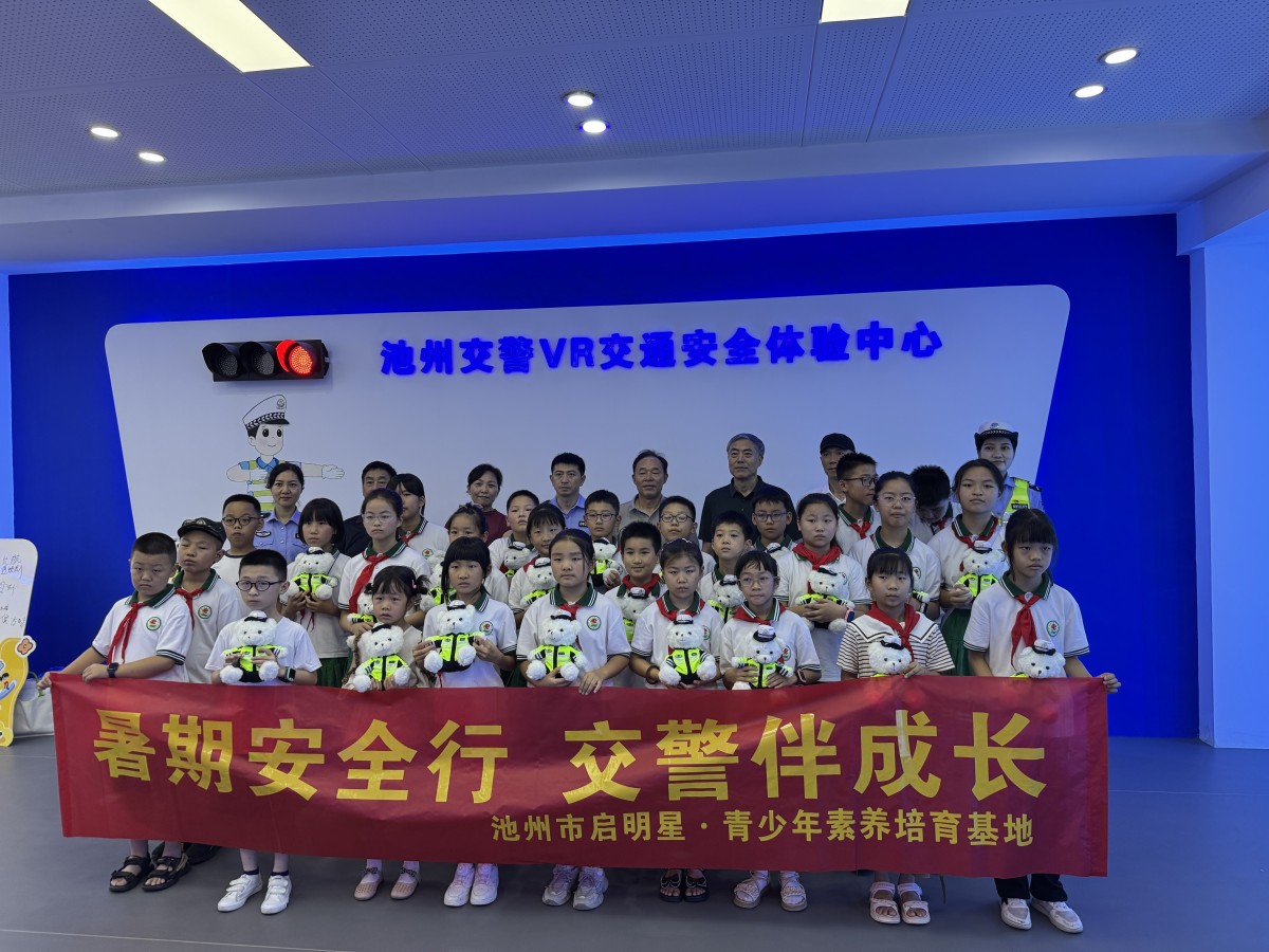 7月4日上午,安徽省池州市关工委、市公安局关工委、安徽省仁众教育基金会联合组织贵池区杏花村实验学校“启明星·青少年素养培育基地”近30名学生走进市交警支队,通过沉浸式体验学习交通安全知识。市关工委副主任姚五建,市公安局关工委常务副主任夏文松,市交警支队党委书记、支队长尹孙佳、安徽省仁众教育基金会秘书长、市关工委副秘书长陈淑华等出席活动。