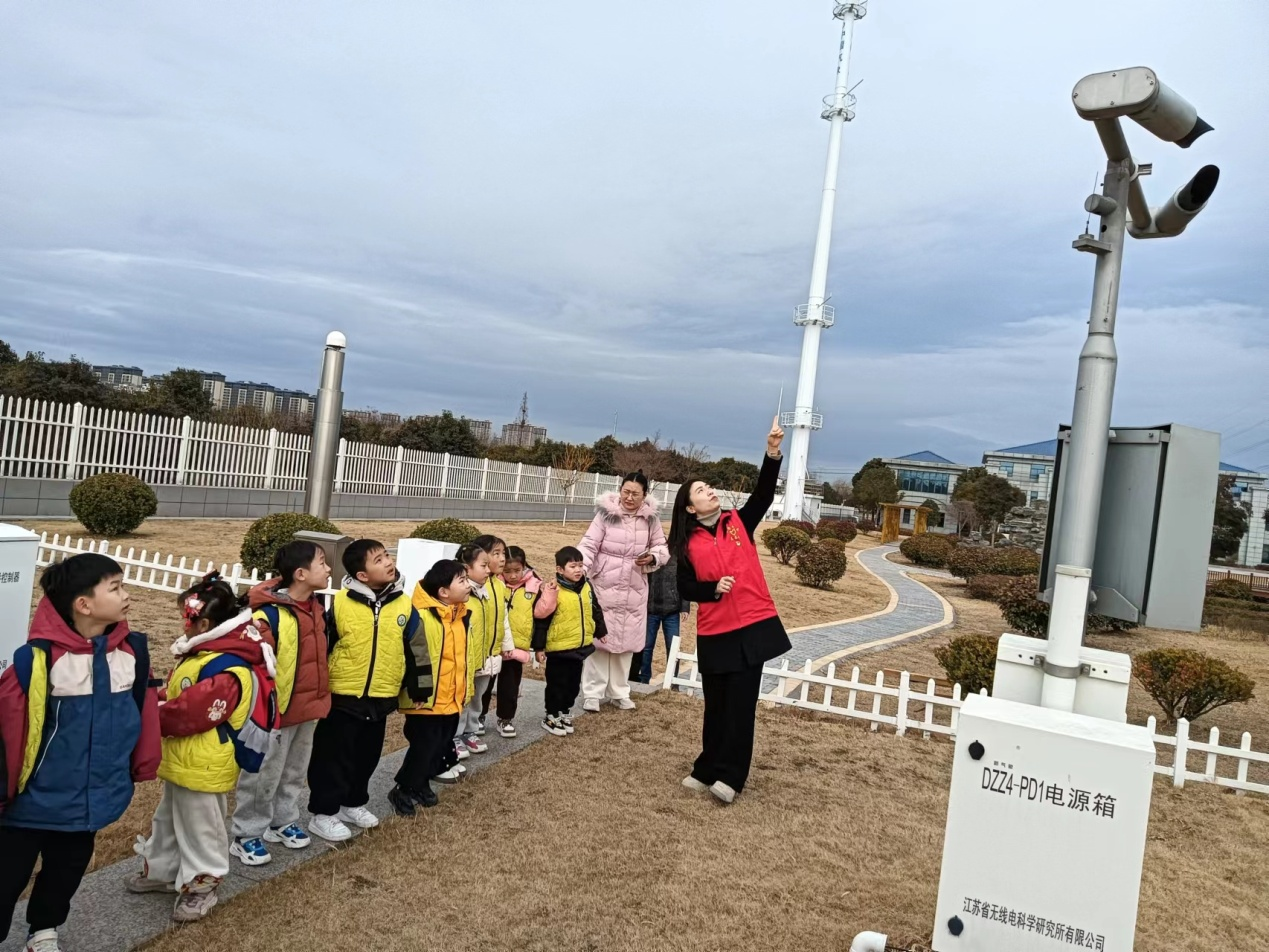 上午9时,孩子们在老师的带领下,来到了盐都区气象局,工作人员将孩子们带到气象观测区,热情地为孩子们讲解了各种设备的功能和作用。如有的是测量风向、风速的、有的是测量空气质量的、有的是测量雨量的、有的是测量地表温度、有的是测量地表下土层温度。各项数据源源不断输送到数据中心,通过工作人员科学分析,作出精准的盐都区天气预报,为人们的生产和生活提供服务。接着孩子们来到了气象局楼内,工作人员向孩子们讲解了雨雾雷霜天气的形成及人工对天气的干预等方面的知识,使孩子们对气象知识有了一定的了解。