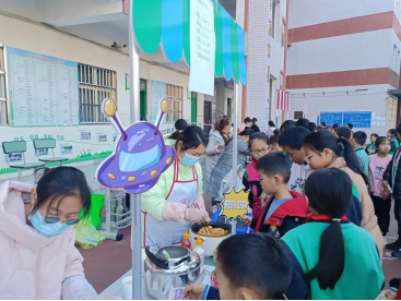 庙会上,家长和孩子们齐动手,现场制作糖葫芦、关东煮、炸土豆、豌豆粑、寿司、手抓饼等十几项民俗项目闪亮呈现,吸引了大批师生和家长们的围观,大家感受到了传统民俗文化的魅力。跳蚤市场里,同学们以物会友,美妙邂逅。学校操场边排列着20余个摊位,各具特色的社团文创产品、多种多样的课外书、精致美观的原创手工艺品,