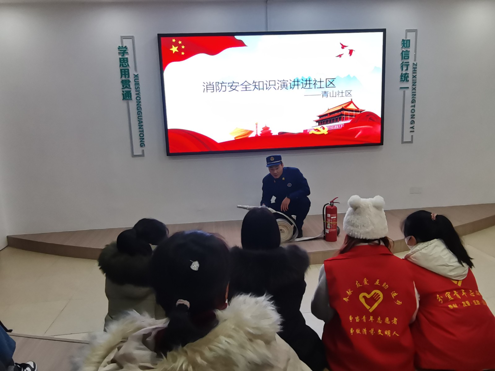 为推动社区青春行动深入实施,增强社区青年志愿者的消防安全意识,提高志愿服务水平和服务质量,有效预防火灾事故的发生,2024年1月29日,江西省新余市分宜县钤西街道青山社区关工委联合县消防大队组织大学生志愿者开展消防安全知识大讲堂。