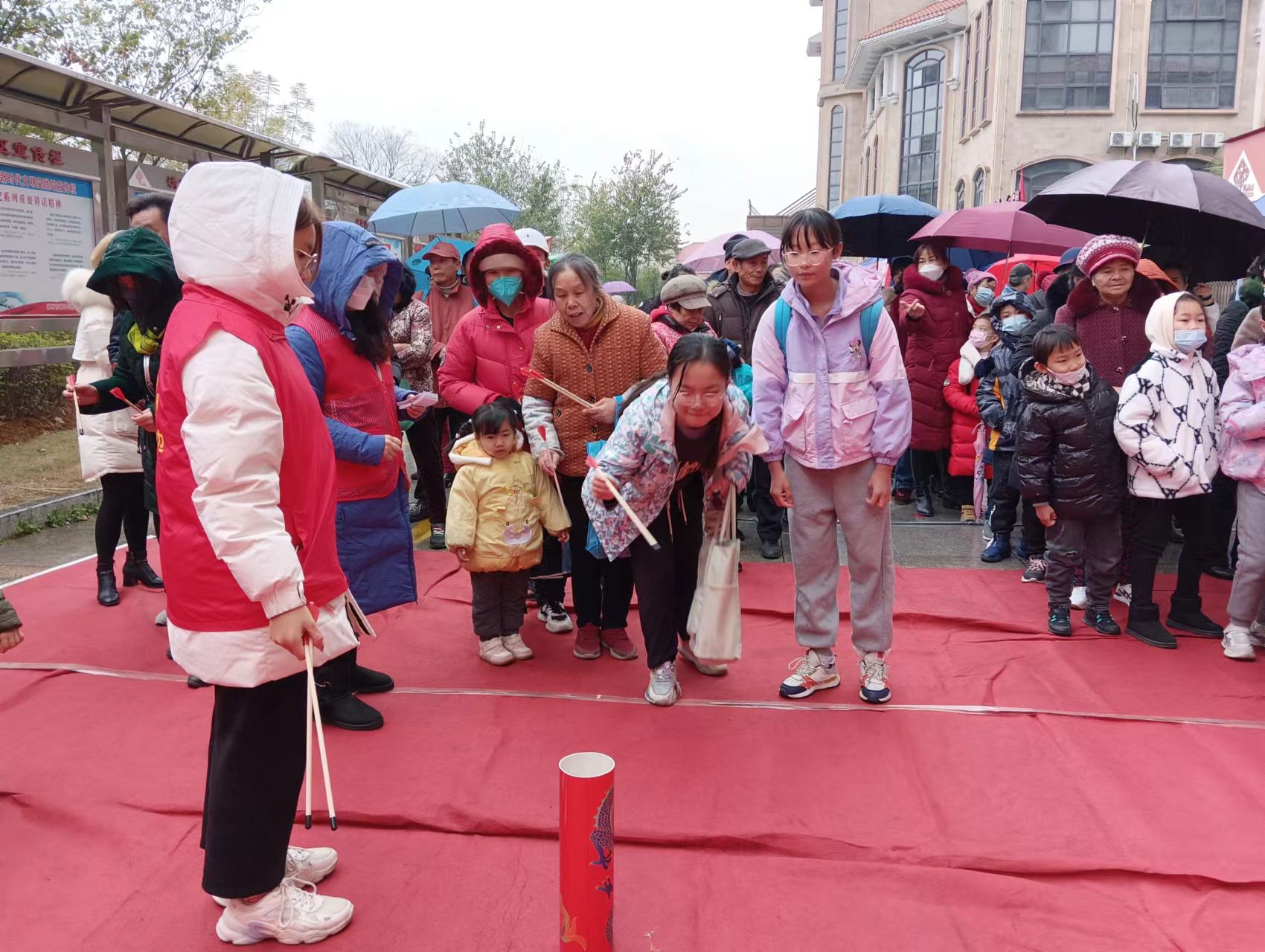 游园活动现场气氛热烈,每个项目都排起长长的队伍,吸引了男女老少社区青少年、居民们前来参与。游园项目丰富多彩,游戏趣味十足,有幸运转盘、套圈、掷骰子、投壶、夹玻珠、蒙眼敲锣等,深受广大青少年好居民朋友们的喜爱,大家玩得不亦乐乎,兴高采烈的拿着获得的奖券到领奖处兑换奖品。