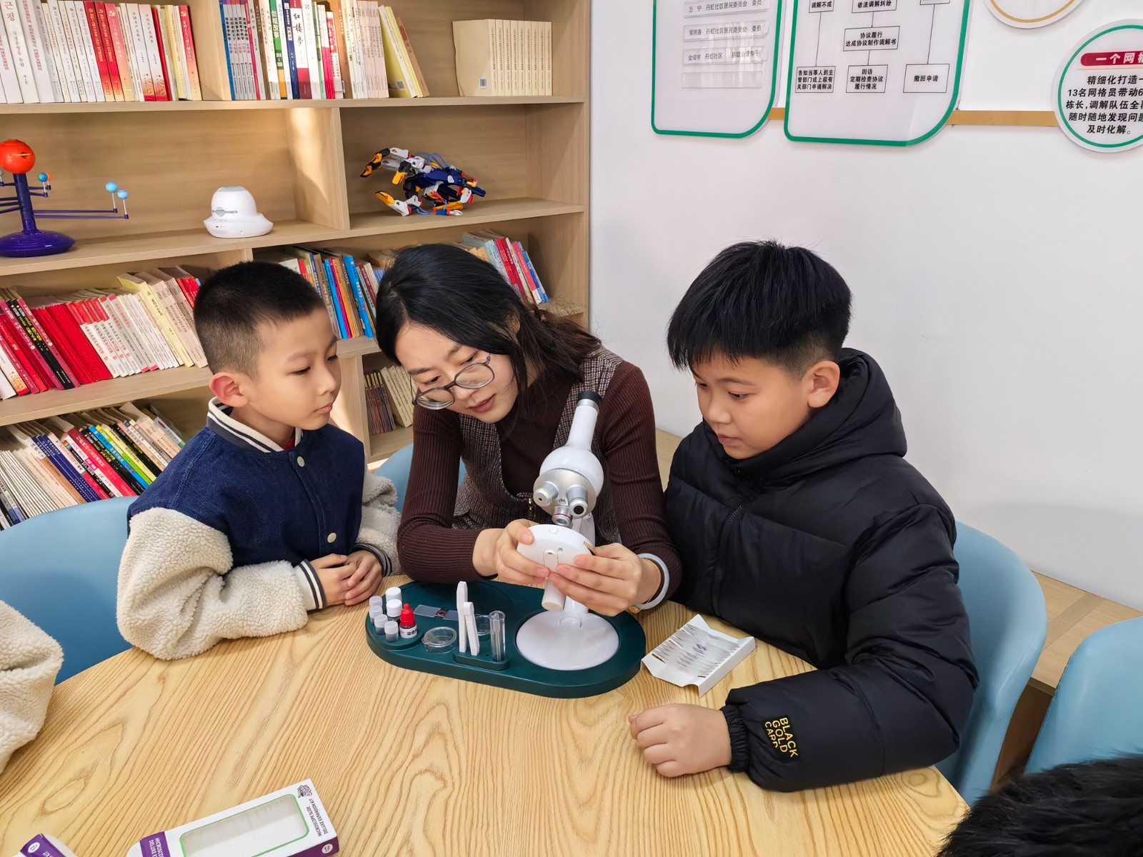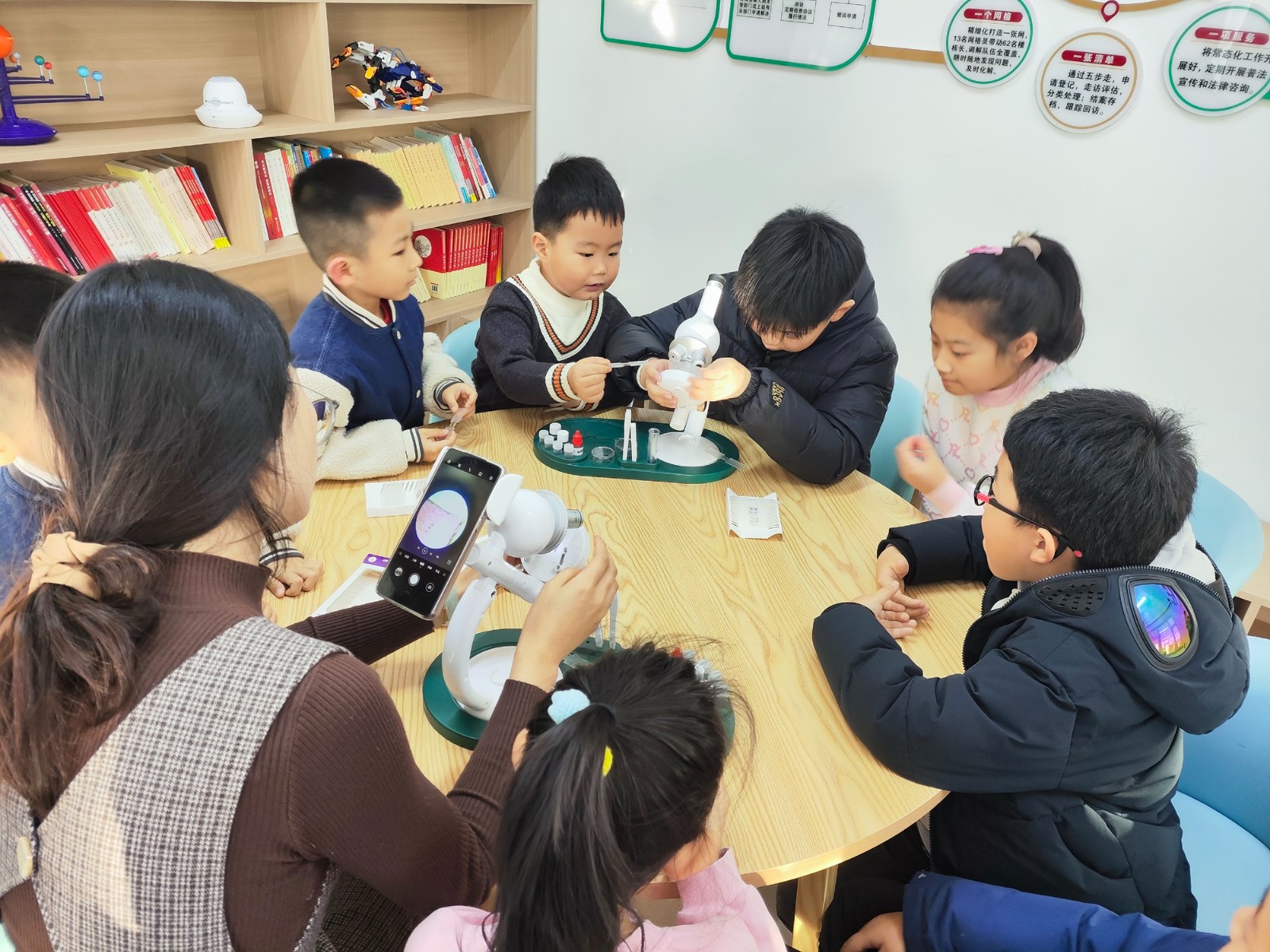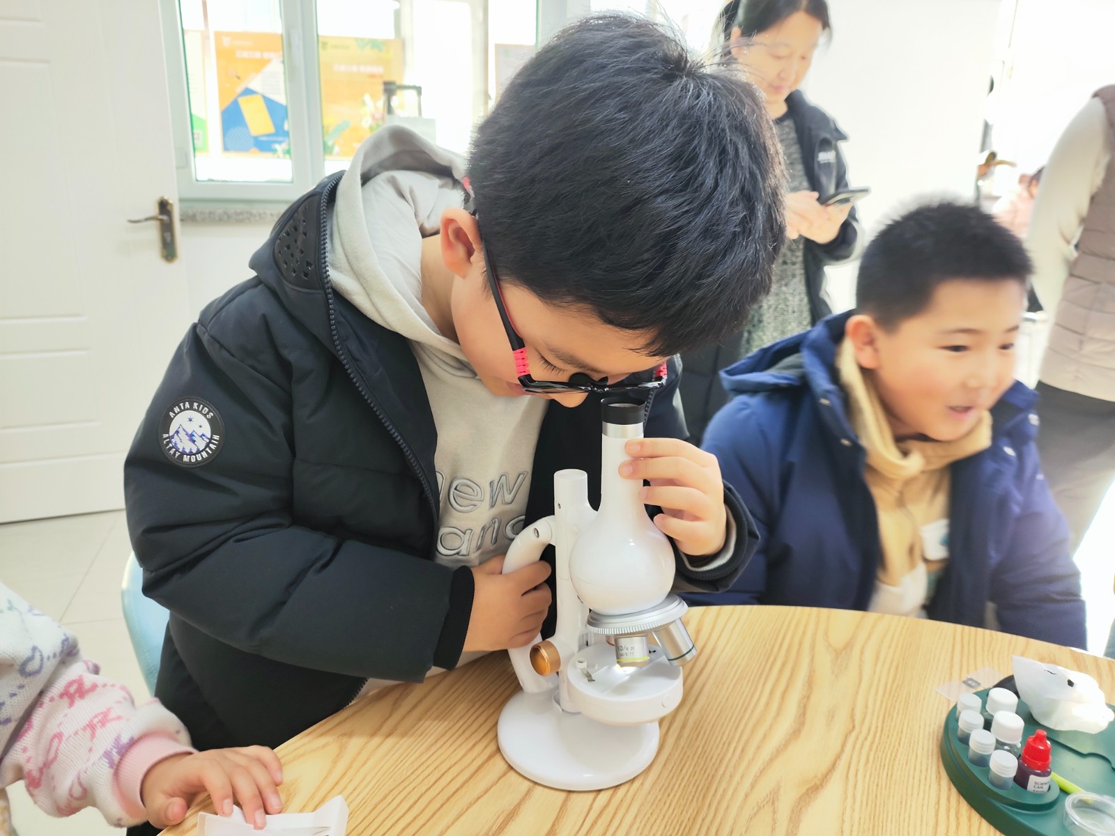 活动中,北山街道挂职副主任原丹妮细心地为孩子们讲解和指导了显微镜的结构和使用方法,孩子们认真学习,亲自动手、亲身体验,通过尝试练习使用显微镜观察植物切片中的细胞和细菌,拓宽了眼界、增长了科学知识。孩子们相互合作,沉浸式体验了科学的神奇魅力,在心中播下了热爱科学、崇尚科学的种子,激发了探索科学的热情。