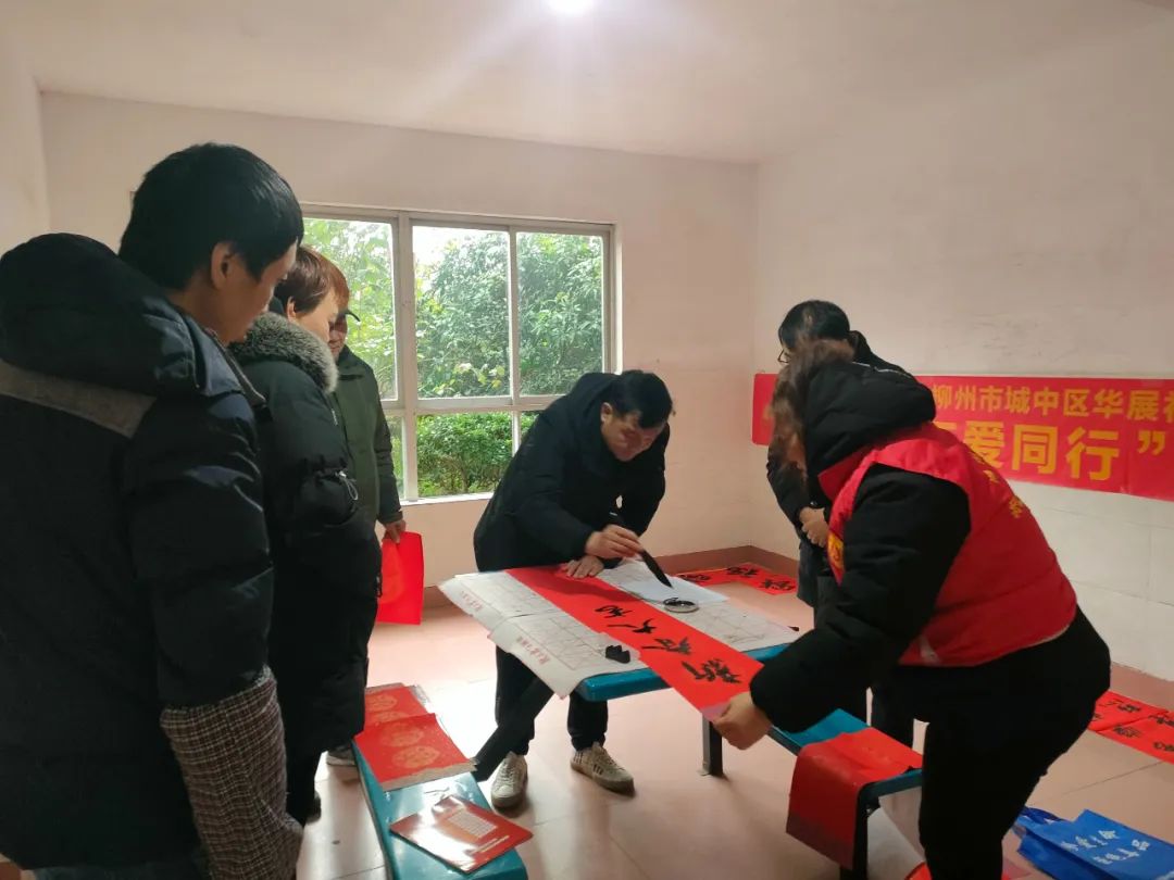 在活动现场的另一边,欢乐祥和,墨香四溢。书法志愿者现场挥毫泼墨,字里行间写满了对新年的期待与愿景。“五福临门鸿运开,万事顺心如意来……”前来围观的居民一字一句的读着春联的内容。寓意吉祥的春联与喜气洋洋的“福”字深受大家的喜欢,让参与的居民们提前感受到了浓浓的年味。