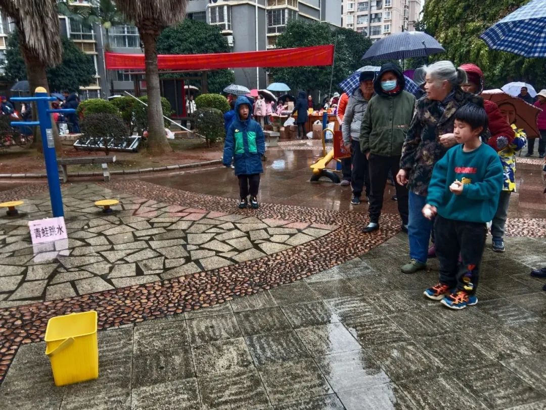 当天下午,活动还未开始,小广场上就聚集了许多青少和居民群众,大家翘首以盼,打算在游园活动中大展身手。趣味套圈、盲人敲锣、青蛙跳水、射击等多个趣味游戏,虽然天空飘着小雨,但这丝毫没有减退群众的热情,大家排着队参加,欢声笑语不绝于耳。
