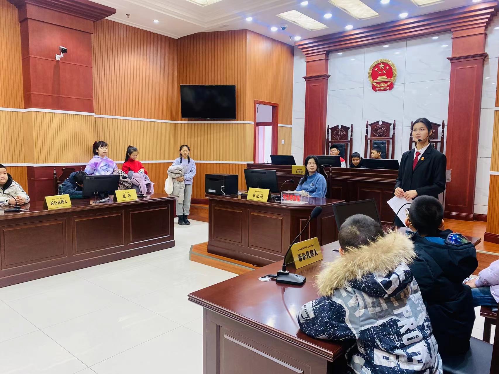 工作人员用通俗易懂的语言向同学们介绍法规、法徽、法槌、法袍等的含义和作用,介绍法院案件的基本审理流程,让同学们对法院和法官的工作有了比较直观的了解。在2场庭审过程中,庄严的国徽、威严的法台、宽大的法椅,让孩子们顿感庄重和肃穆。整个庭审过程秩序井然,孩子们认真观摩,感受到了法官依法严惩,保障人民安全的决心。