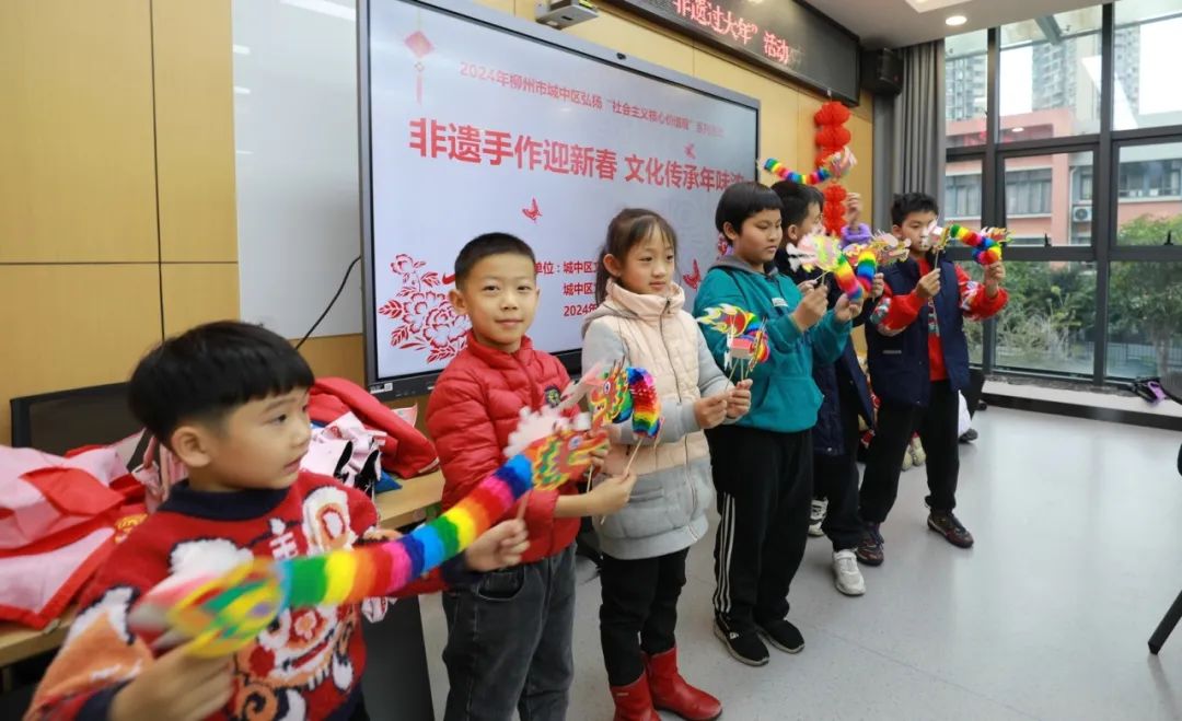2月2日,“瑞龙腾盛世 春映民族花”2024年广西柳州城中区教育局关工委、区文化馆“过大年 非遗迎新好开心”迎新春活动在区文化艺术中心一楼及城中区文化馆二楼、六楼热闹举行。小朋友、大朋友们都来到这里体验非遗文化,感受柳州传统民俗,共同迎接新年的到来。