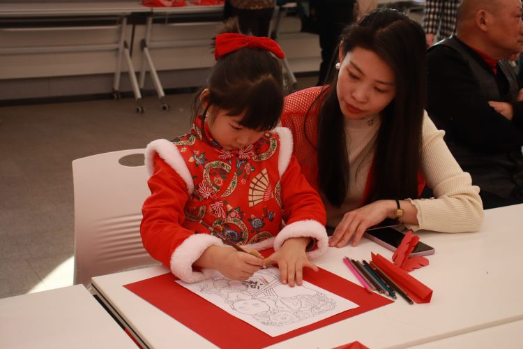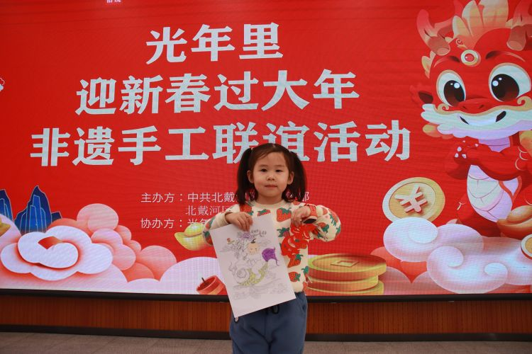 在“欢喜绘年画”环节,小朋友和爷爷奶奶们用丰富多彩的颜料和创意绘制出自己心目中的遥远而美好的龙腾图案,展示了春节喜庆的氛围。