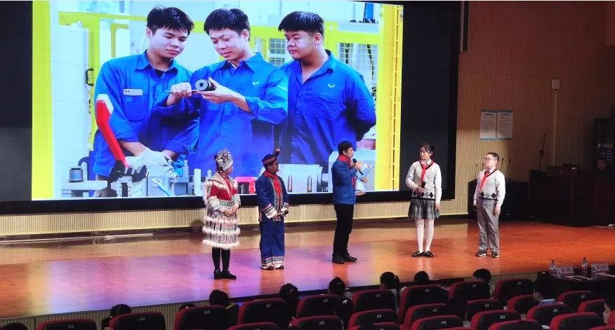 在接下来的环节中,学校“守望成长 红领巾宣讲团”的五名少先队员通过角色扮演的方式,向全校师生讲述了各行各业少数民族先模人物为励志实现民族团结复兴梦的故事。他们用真挚的语言,表达了对民族团结的热爱和追求,让在场的师生深受感动。