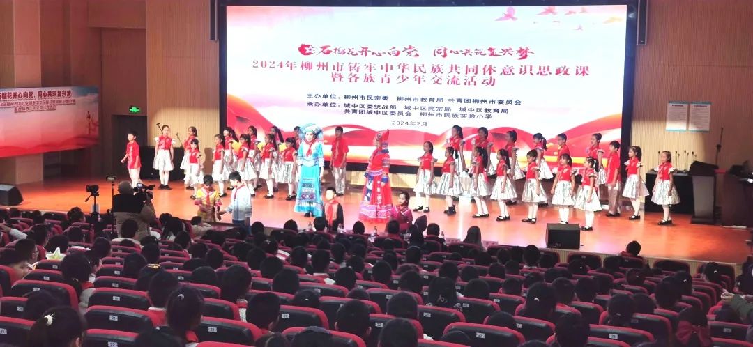 2月26日上午,广西柳州市铸牢中华民族共同体意识思政课暨各族青少年交流活动在市民族实验小学举行。