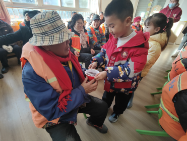 孩子们变身“爱心小天使”,在老师的带领下,端着一碗碗热气腾腾的腊八粥,走向社区的保洁员爷爷奶奶。“爷爷奶奶,你们辛苦了,这是我们准备的腊八粥,快尝尝吧!” 稚嫩的声音如同冬日里的暖阳,温暖着每一位保洁员的心。保洁员接过腊八粥,纷纷夸赞孩子们懂事、善良。在这一刻,孩子们用实际行动诠释了关爱与尊重的含义,让社区的劳动者们感受到了来自下一代的温暖与敬意。