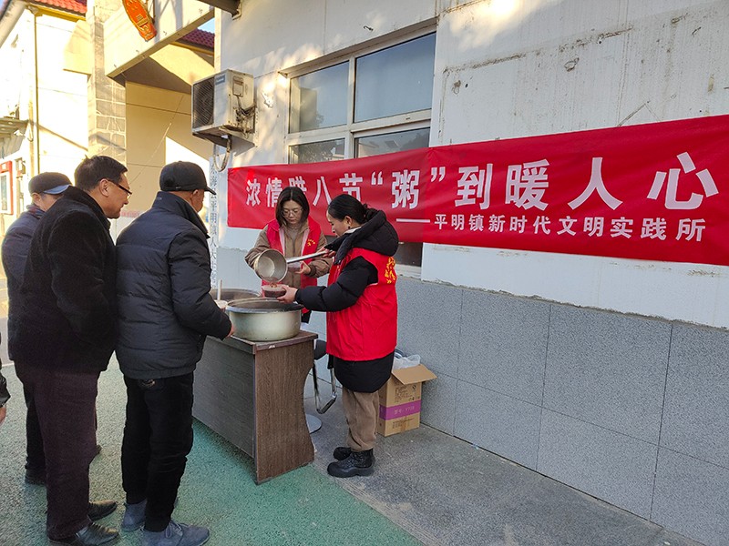为弘扬传统节日文化,传递社会温暖,平明镇关工委联合镇新时代文明实践所、宣传办、妇联于腊八节当天举办“浓情腊八节 ‘粥’到暖人心”活动。此次活动旨在为镇上的环卫工人及村镇居民送上节日的问候与关怀,通过一碗碗热腾腾的腊八粥,让大家感受到浓浓的节日氛围与温情。