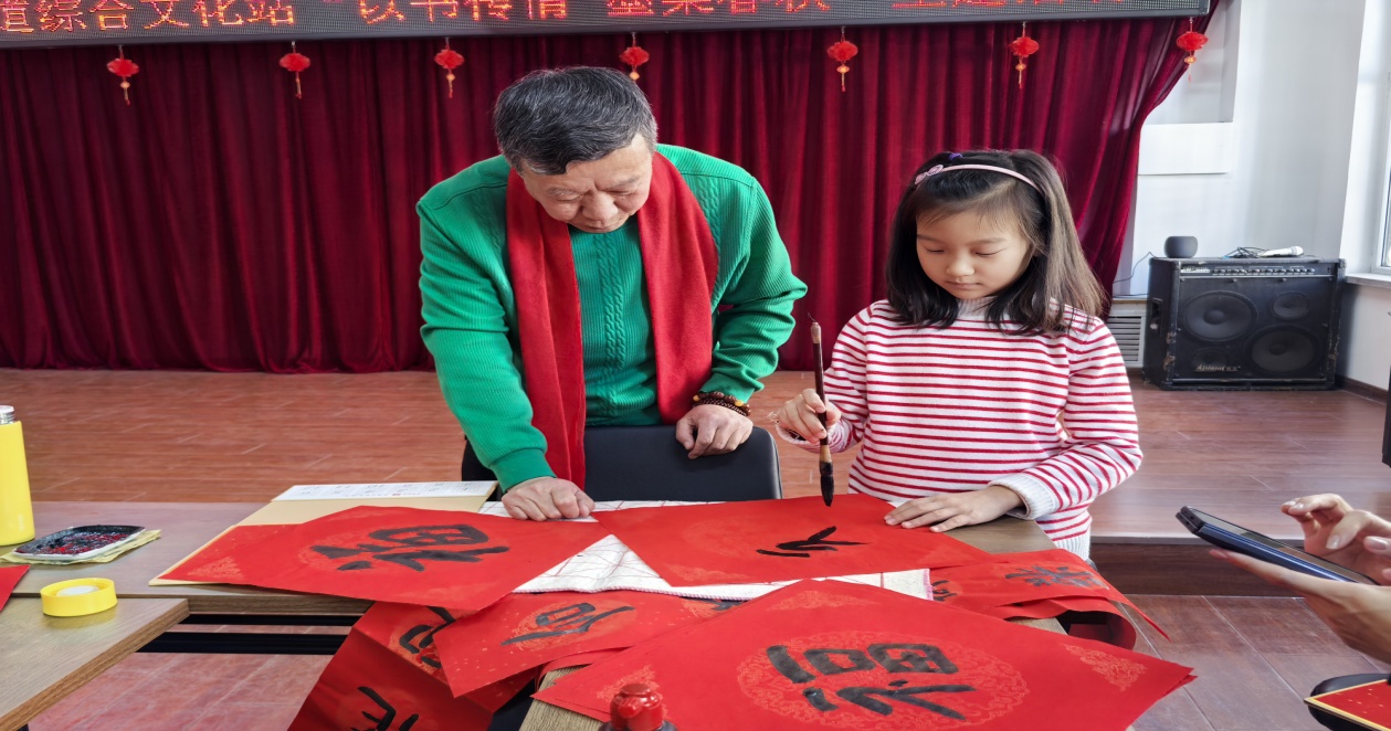 笔墨飘香迎新春,书法之道送祝福。1月7日,东站街道瑞家社区关工委在综合文化站开展“以书传情 墨染春秋”主题活动,邀请专业书法老师及辖区内“五老”及书画爱好者们共书写台历、福字和心愿签,将新年祝福倾注于一笔一划中,为辖区居民送上文化礼物。