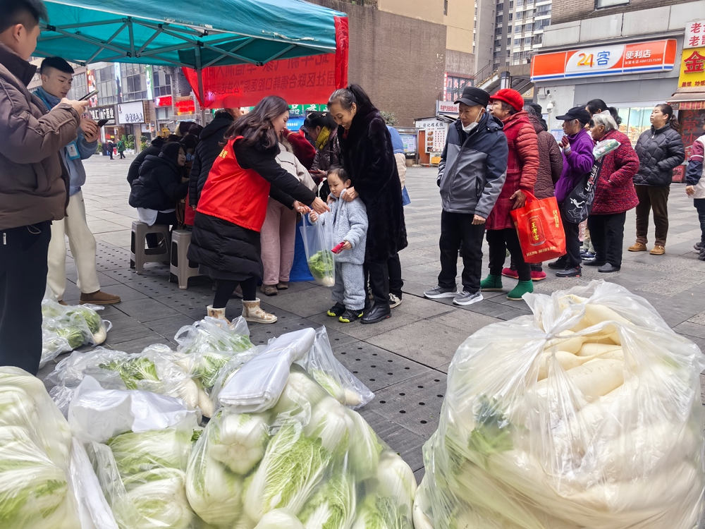 活动现场,社区工作人员和志愿者为前来的居民分发爱心企业购买的蔬菜,大家有序排着长队等待领取,脸上都洋溢着幸福的笑容。同时为了让独居老人、残疾人等感受到这份温暖,工作人员和志愿者将爱心蔬菜包送上门。