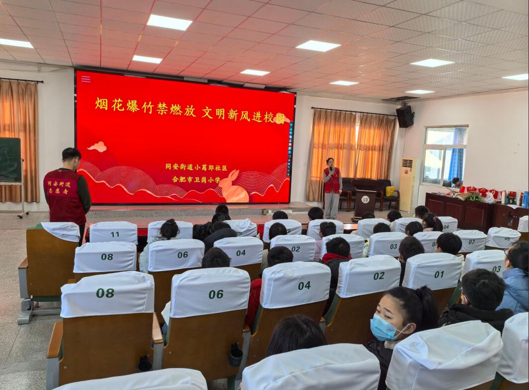 为进一步提高辖区青少年对燃放烟花爆竹危险性和危害性的认识,提高禁燃禁放的知晓率和普及率,1月10日,合肥市包河区同安街道小葛郢社区关工委联合卫岗小学北区开展“烟花爆竹禁燃放 文明新风进校园”主题安全宣讲活动。
