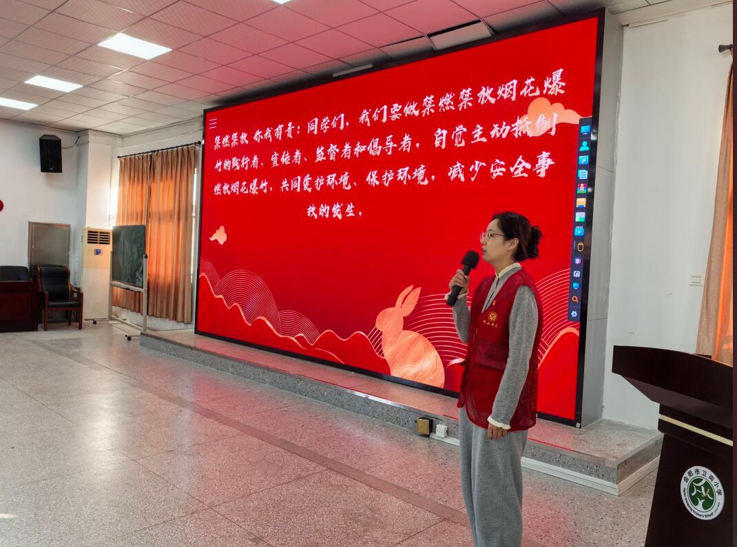 “同学们,燃放烟花爆竹不仅极易引发安全事故,还会造成环境污染,我们要共同守护我们的蓝天和家园。”宣讲中,社区工作人员通过播放PPT和视频的形式,用生动形象的讲解,分别从燃放烟花爆竹带来的安全隐患、环境污染、噪音扰民等多角度,为现场学生们介绍了禁燃禁放的相关知识,提高大家对禁放烟花爆竹相关法律法规的认识,并呼吁学生们回家后积极给家人普法,与家人共同遵守禁燃禁放的相关规定。
