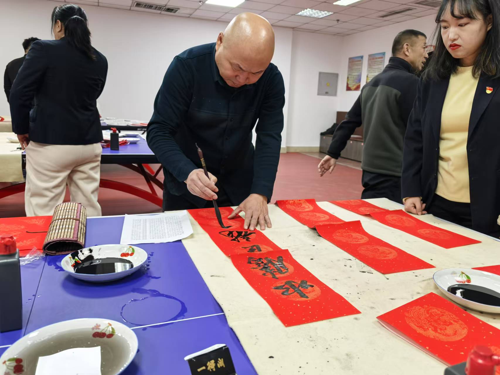 本次活动以“迎新春、写春联、送祝福”为主题,以“笔墨迎春送祝福、党群携手贺新年”为中心,吸引了“五老”志愿社区、社区党员、居民代表以及书法爱好者等众多人员参加。活动现场气氛热烈,墨香四溢。书法爱好者们挥毫泼墨,用一幅幅寓意吉祥的春联表达对新春的美好祝愿。“五老”志愿者、社区党员和居民代表也积极参与其中,协助书法爱好者们整理纸张、晾晒春联,大家齐心协力,共同为营造吉祥如意的春节氛围贡献力量。