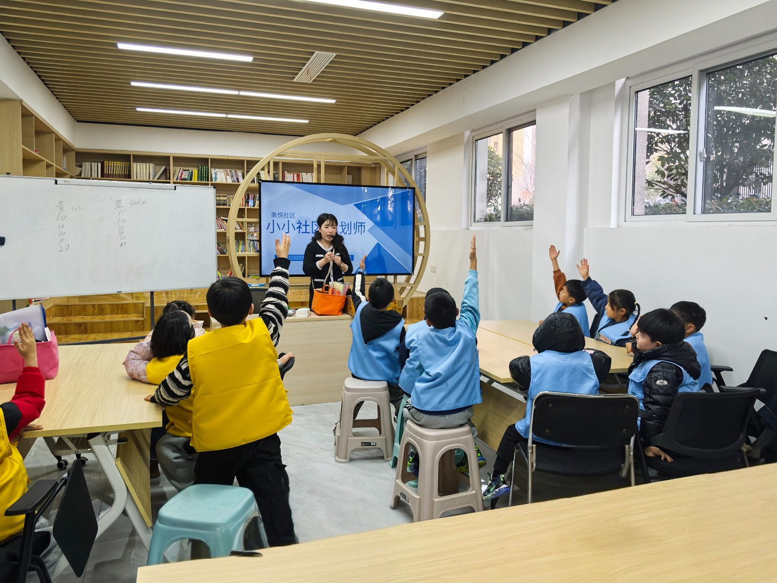 活动伊始,孩子们在工作人员的引导下,以小组形式深入探讨社区中的各类基础设施。从日常休闲的公园到知识殿堂学校,从守护健康的医院到满足生活需求的商店,孩子们积极发言,热烈讨论这些设施的作用与重要性,对社区的构成有了更深刻的认识。