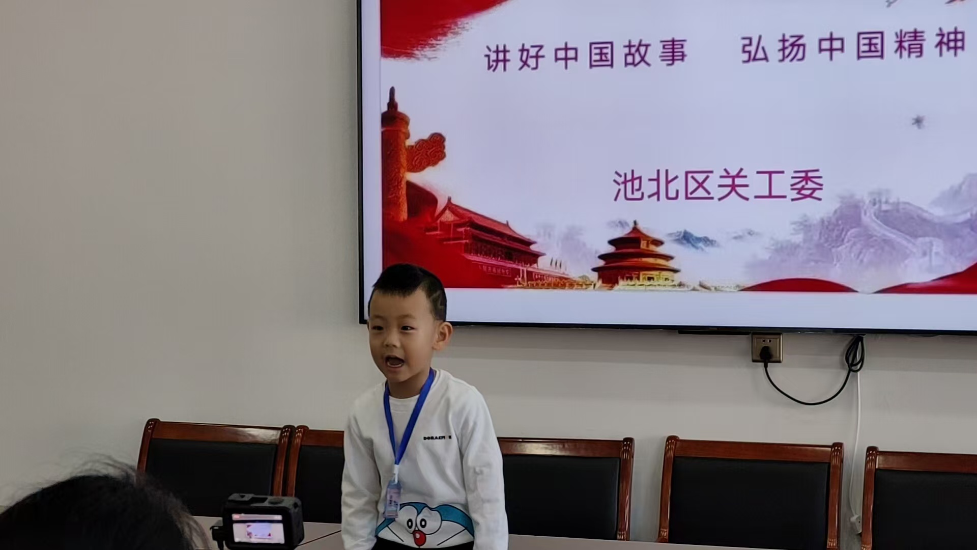 1月10日,池北区关工委在池北区党群服务中心,开展老少同台讲好中国故事弘扬中国精神活动,长白山驻会委员王洁、驻会委员、兼职通讯员,青少年、“五老”骨干,50余人参加了活动。