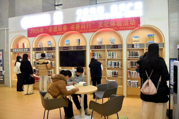 2025年1月14日,中国铁路南宁局集团公司梧州车务段关工委联合梧州市关工委、梧州市图书馆、梧州市非物质文化遗产传承保护中心、梧州市非物质文化遗产保护发展协会在梧州南站联合开展2025年“非遗迎春 书香同行”文化体验活动。围绕“我家乡的非遗”“我最喜欢读的一本书”“六堡茶”等话题进行问答互动。旅客参与答题,答对即可获得小礼品一份,以此激发旅客对非遗文化和阅读的兴趣。