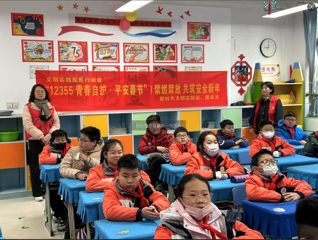 随着新春佳节的脚步日益临近,为积极响应环境保护的号召,合肥市包河区同安街道五里庙社区关工委联合新时代文明实践站于1月9日走进了包河区外国语实验小学五(一)班,联合举办了一场具有教育科普意义的“12355 青春自护·平安春节”主题活动,旨在通过寓教于乐的方式,增强青少年对禁燃禁放重要性的认识,共同营造一个安全、环保、和谐的新春氛围。