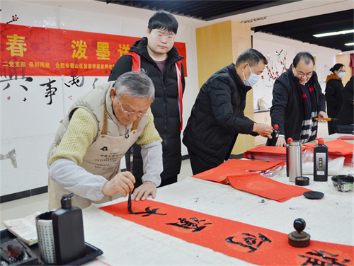 金蛇贺岁,迎春送福。新春佳节来临之际,为弘扬中华优秀传统文化,增进社区邻里间地交流与互动,营造浓厚的节日氛围,1月16日上午,合肥市包河区烟墩街道云川社区关工委携手合肥市蜀山区佰家伴居家养老服务中心、合肥市爱邻社会工作服务社开展“妙笔迎新春 泼墨送祝福”写春联活动。