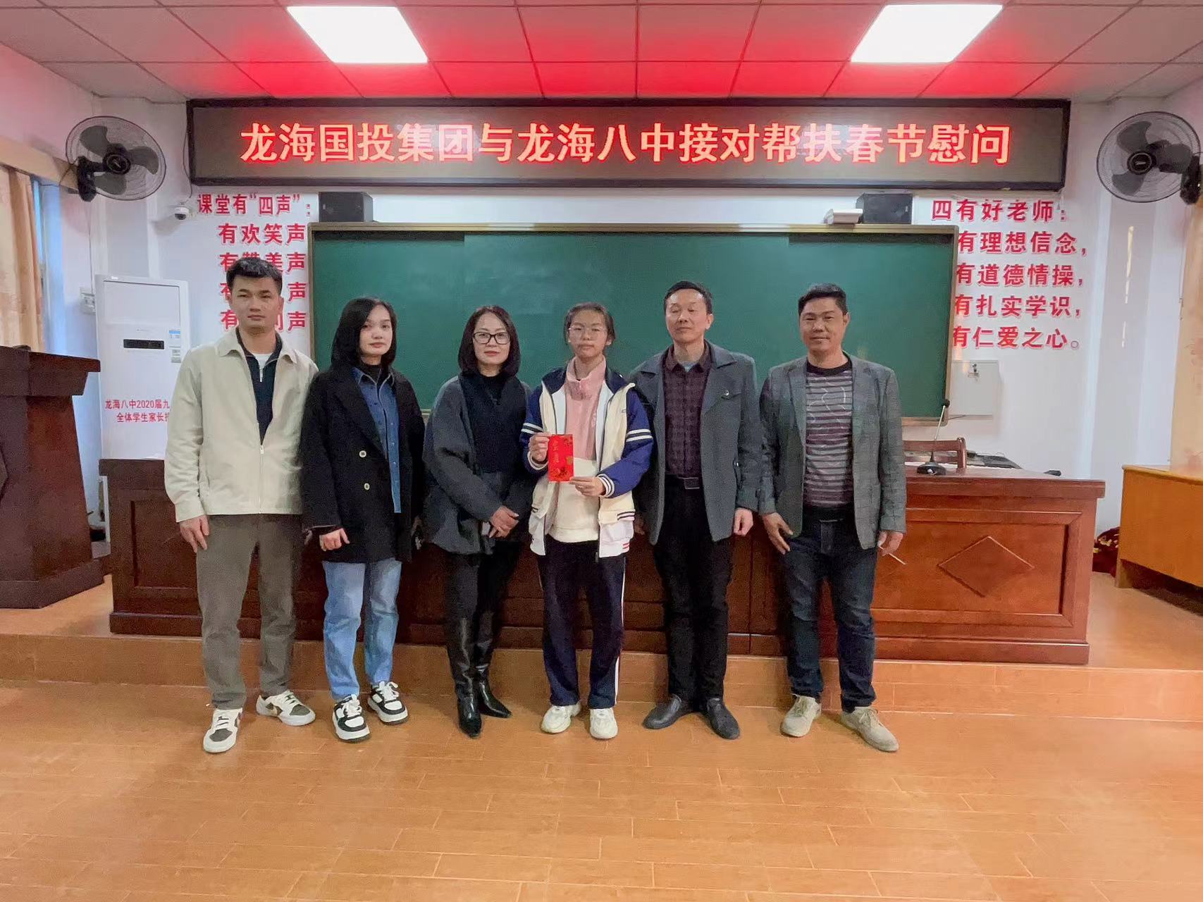 在春节来临之际,1月17日下午,福建省漳州市龙海区国投集团关工委前往龙海区第三中学、第四中学、第八中学开展困境学生关爱帮扶活动,为孩子们及家长送去春节的温暖和祝福,让他们感受到来自党和政府的关心关怀。