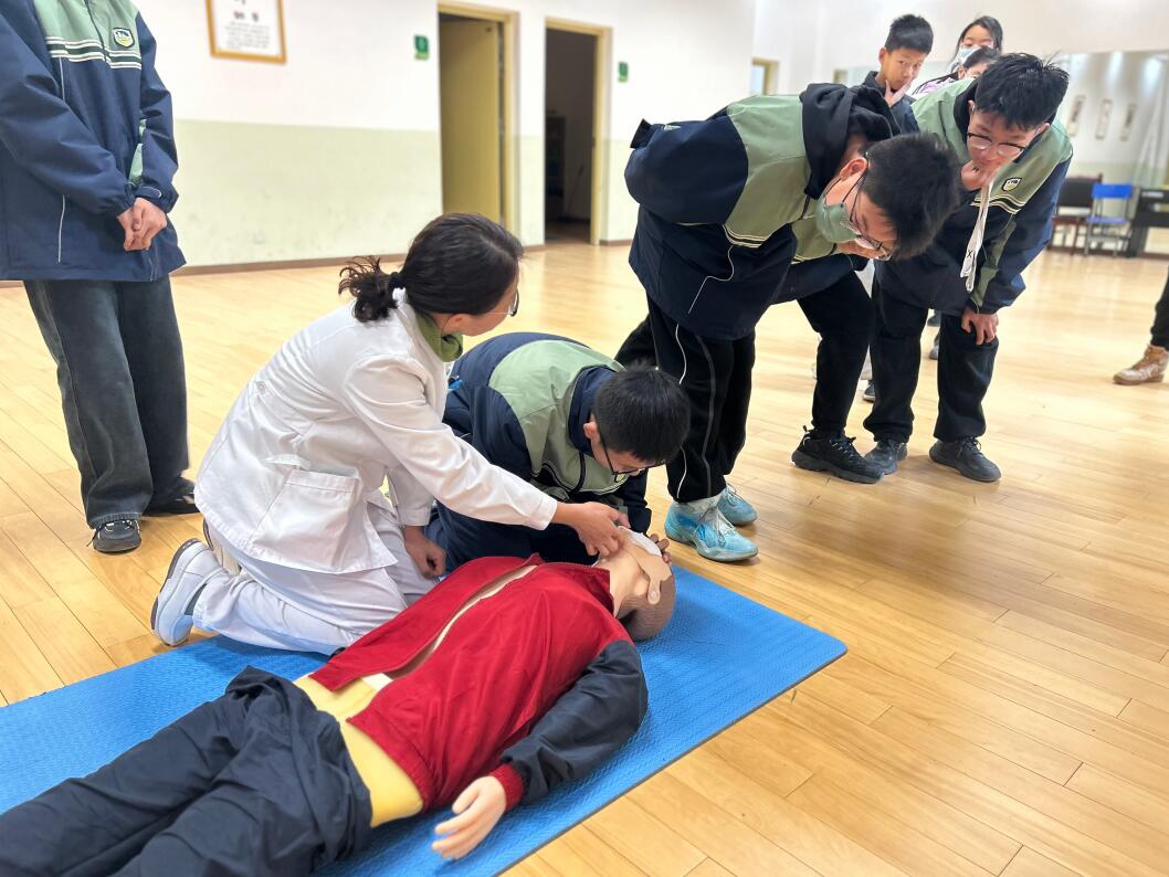 活动现场,同安街道卫生服务中心的医生用生动的讲解方式,为同学们讲解了心肺复苏(CPR)、海姆立克急救的方法,包括如何判断意识、呼叫急救、进行胸外按压和人工呼吸及如何快速进行海姆立克急救等。医生手把手示范,通过边演示边讲解的方式,让同学们能够直观地理解每一个操作环节的重要性和规范性,随后逐一指导同学们反复练习,让他们在实践中切实学会正确的急救步骤和技巧,提高应急反应的能力。活动后,一位学生说:“通过今天的培训,觉得收获很多,以后在遇到紧急突发情况时,自己也能第一时间敢于急救,挽救一个人的生命,特别有成就感。”