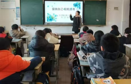 班会课上,老师们通过多种形式展开活动。有的班级运用生动有趣的心理小故事引入主题,如讲述一只小兔子努力学习游泳却始终失败,最终发现自己擅长奔跑并接纳自身特点的故事,让同学们直观地理解接纳自己的重要性;有的班级组织学生进行小组讨论,分享自己在面对考试时的紧张情绪和内心担忧,鼓励大家互相倾听、给予支持。针对如何轻松应考,老师们给出了实用的建议,包括合理制定复习计划、掌握有效的学习方法以及调整考前心态等。同学们积极参与互动,纷纷表示收获颇丰。