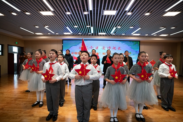 全体人员起立高唱《没有共产党就没有新中国》,激昂的歌声将活动推向高潮。