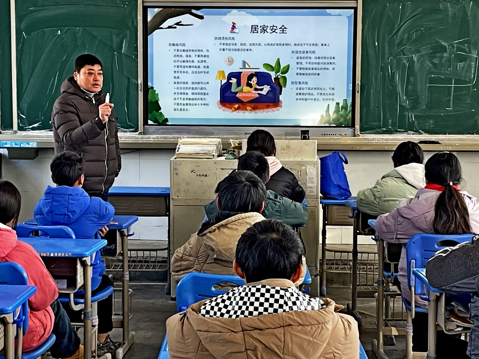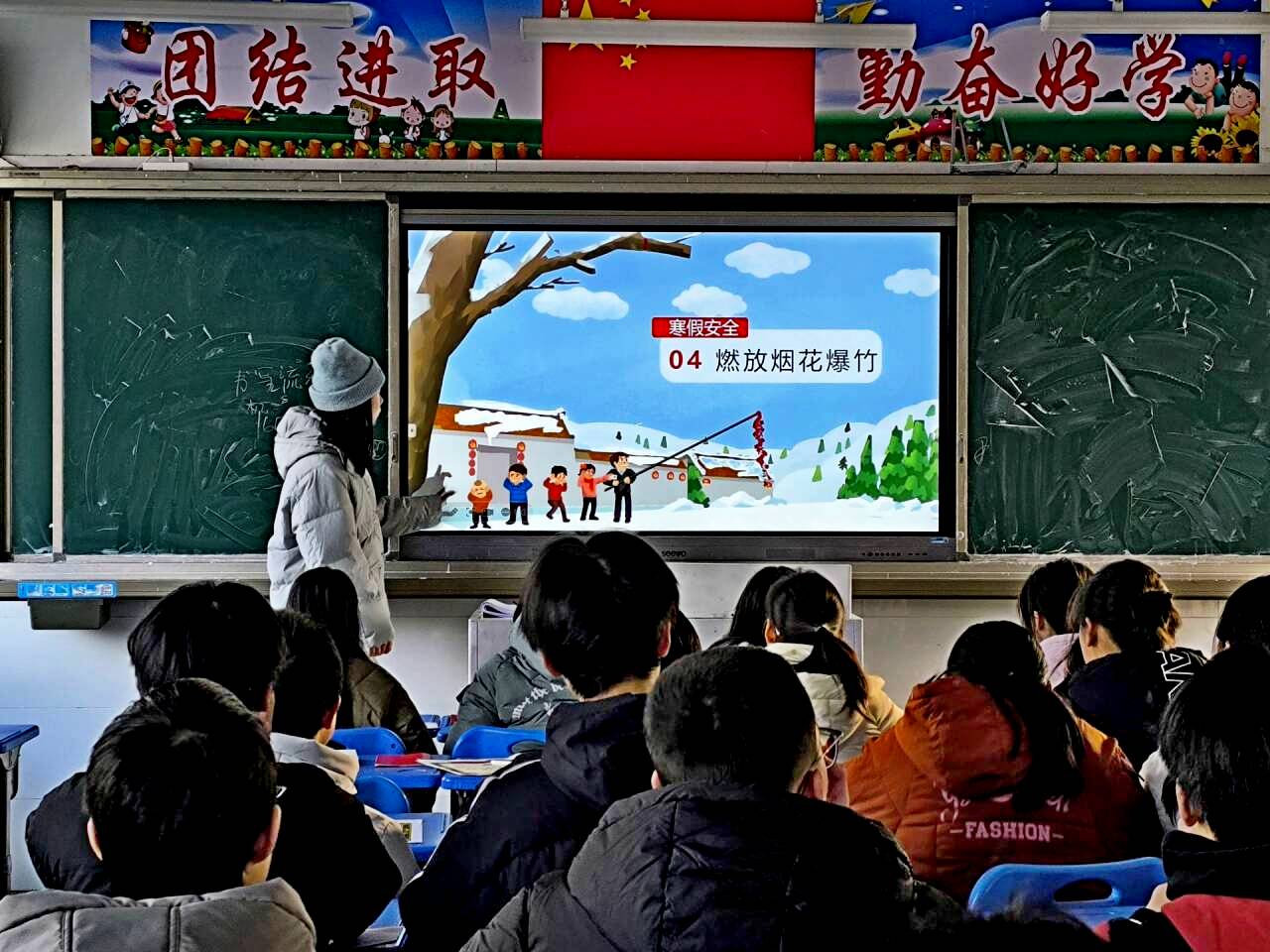 活动中,各班班主任充分利用一体机,通过PPT回顾和反思了近年来寒假发生的典型安全案件,结合学生的年龄特点,将安全教育融入学生生活之中,重点对学生进行防交通事故、防火灾、防触电、防煤气中毒、防冻滑大雾、防滑冰溺水、防食物中毒、防诈骗诱拐、禁止燃放烟花爆竹、心理健康等方面的安全教育。
