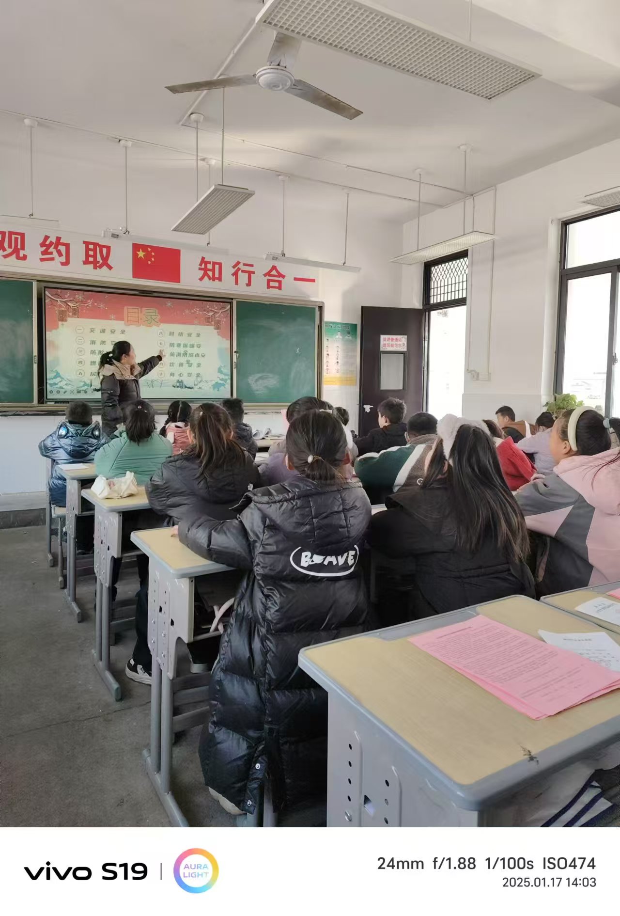 各班主任通过生动形象ppt视频资料,向学生们讲解防溺水防滑冰安全、不燃放烟花爆竹、防欺诈、交通安全、消防安全、网络安全、防火防触电等方面的知识。在交通安全教育环节,班主任着重强调了出行要遵守交通规则,过马路注意观察路况,不乘坐无牌无证车辆等内容,不乘坐改装混装的车辆。不能到河湖边池塘等水域钓鱼、玩耍,不滑冰,防止因冰层破裂导致溺水事故发生。不燃放烟花爆竹,避免炸伤事件的发生。下发《禁止燃放烟花爆竹致家长的一封信》《2025年寒假安全致学生家长的一封信》等,老师带领学生学习,回家以后学生带领家长学习,按照要求去做,把回执单家长学生签好字,保管好,开学以后交到学校保存。