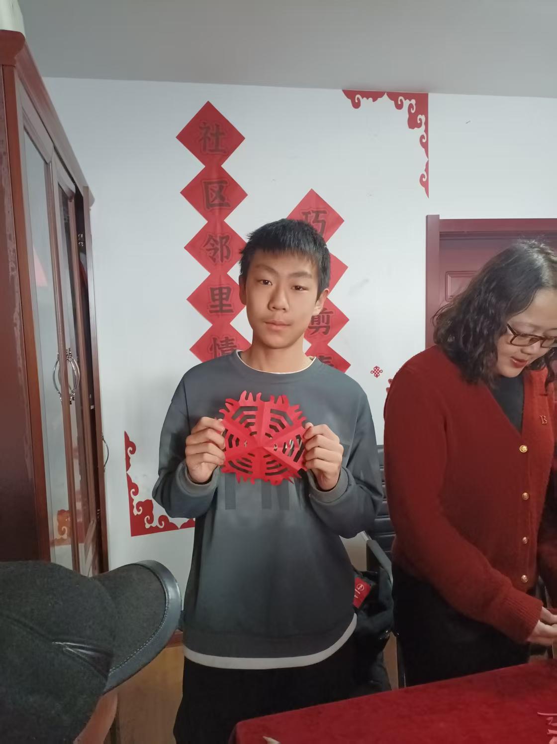 在活动过程中,邻里之间的情谊也在悄然升温。小朋友们向“五老”人员请教剪纸技巧,长辈们则毫不吝啬地分享自己的经验,欢声笑语回荡在整个活动现场。小朋友们充分发挥自己的想象力,剪出了漂亮的雪花;老人们则凭借着娴熟的技艺,创作出一幅幅精美的传统剪纸作品,如喜庆的“喜”和“春”字、活泼的生肖图案等。一张张红纸在大家手中变成了一件件饱含新春祝福的艺术品。