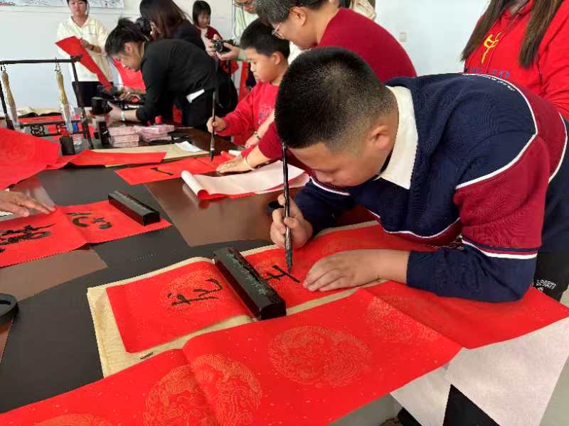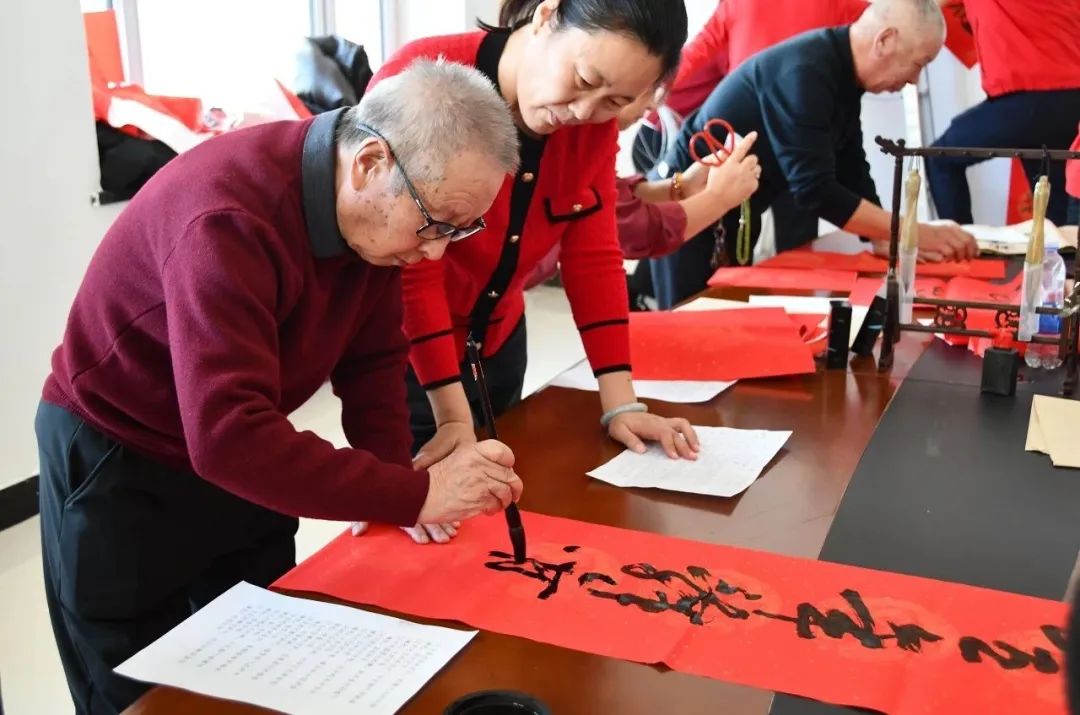 活动中,辖区“五老”、书法爱好者和辖区青少年们激情满怀,挥毫泼墨,一起写春联、写“福”字,送“福”气,大家将对新年的美好期许都融入一幅幅春联之中,用火红的春联为新年增加节日氛围。写作之余,“五老”还给孩子们讲述《年》的故事和春节的各种习俗,介绍南方和北方年文化的不同,让孩子们感受传统文化的独特魅力,加深了青少年们对传统文化的热爱。