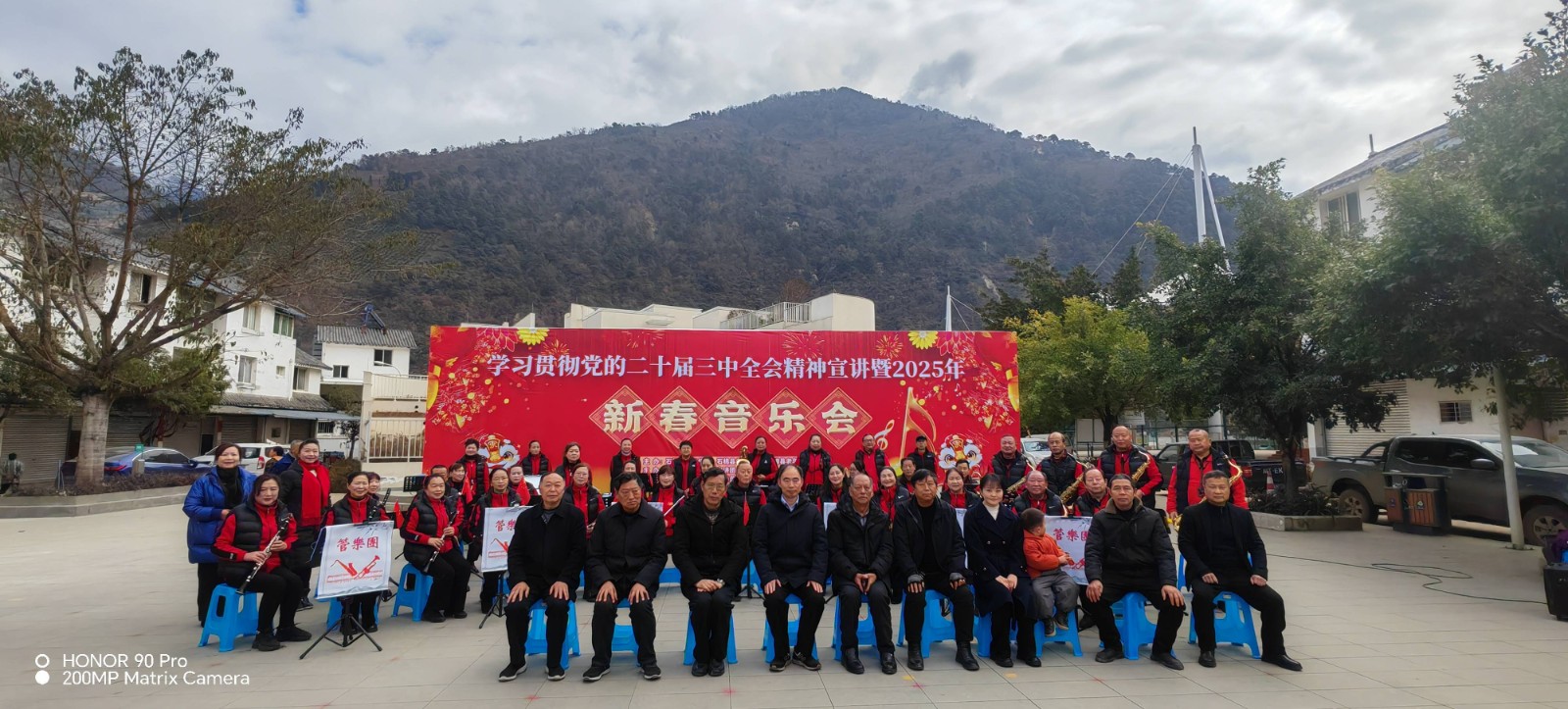 蛇年新春将至,四川省雅安市石棉县“五老”启明心宣讲团在新民藏族彝族乡举行“学习贯彻党的二十届三中全会精神宣讲暨新春音乐会”。县老年大学校长倪光明,县关工委执行主任张进华,常务副主任、县老协会长李荣智,县社科联主席宋廷刚,县老协副会长祁光照、车荣,新民乡副乡长张椰林参加了活动。海耳村组群众约80人观看演出。