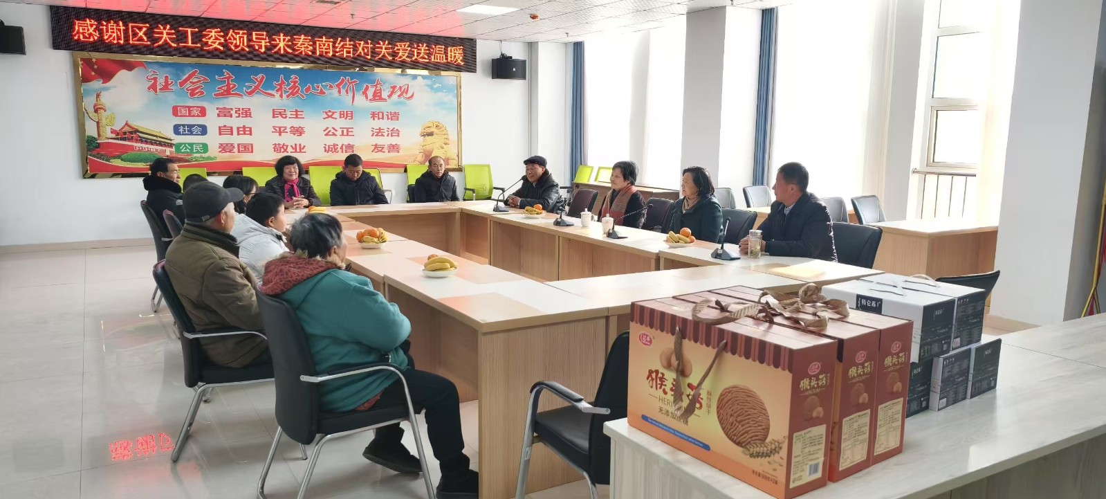 1月21日上午,江苏省盐城市盐都区关工委主任穆芹和办公室副主任尤永霞深入秦南镇开展留守、困境儿童大走访和冬季送温暖活动,秦南镇相关部门负责同志陪同参加。该镇贺家驿村孤儿周子涵:事实无人抚养儿童刘思瑶和红沥村特困家庭儿童周子轩分别得到了区关工委领导送来的春节慰问金,还有一个大礼包。穆主任十分关心孩子们的健康成长,亲切询问了孩子们的学习与生活情况,鼓励他们不畏艰辛,奋发图强,好好学习,天天向上;要求他们感恩社会,感恩前辈、感恩所有曾经帮助过的人;听党话、跟党走,早日成为对国家、对社会有用的人,为祖国和人民、为家乡和社会作出自己应有的贡献。