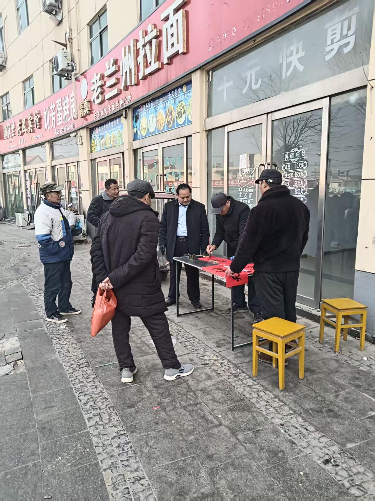 2025年1月22日(农历腊月二十三青湖大集)上午,江苏省连云港市东海县青湖镇步行街关工委积极组织有书法能力的三名“五老”人员,到青湖镇大集北面为前来赶年集的农户义务写春联、送祝福。
