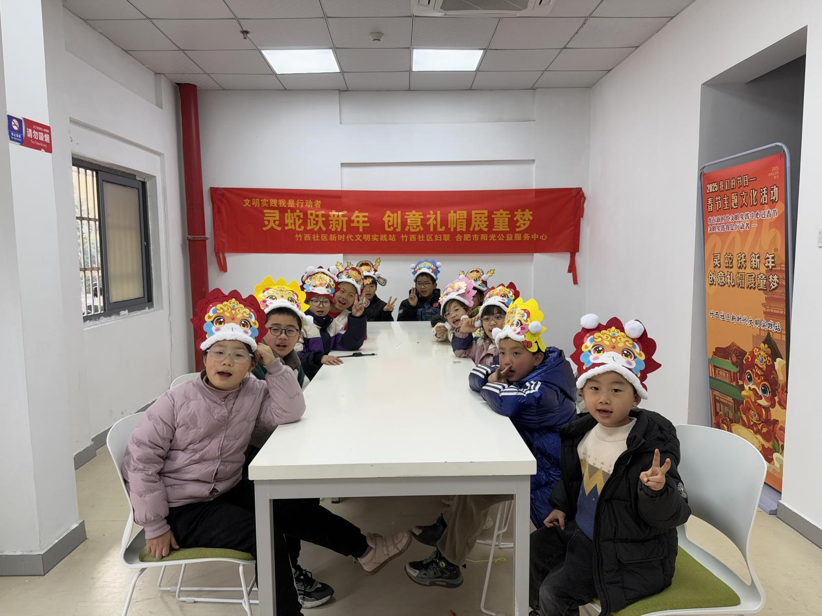 在新春佳节来临之际,为了让辖区青少年感受到浓厚的节日氛围,激发他们的创造力与动手能力,1月22日,安徽省合肥市包河区常青街道竹西社区关工委、妇联精心策划开展了“灵蛇跃新年,创意礼帽展童梦”主题手工活动。