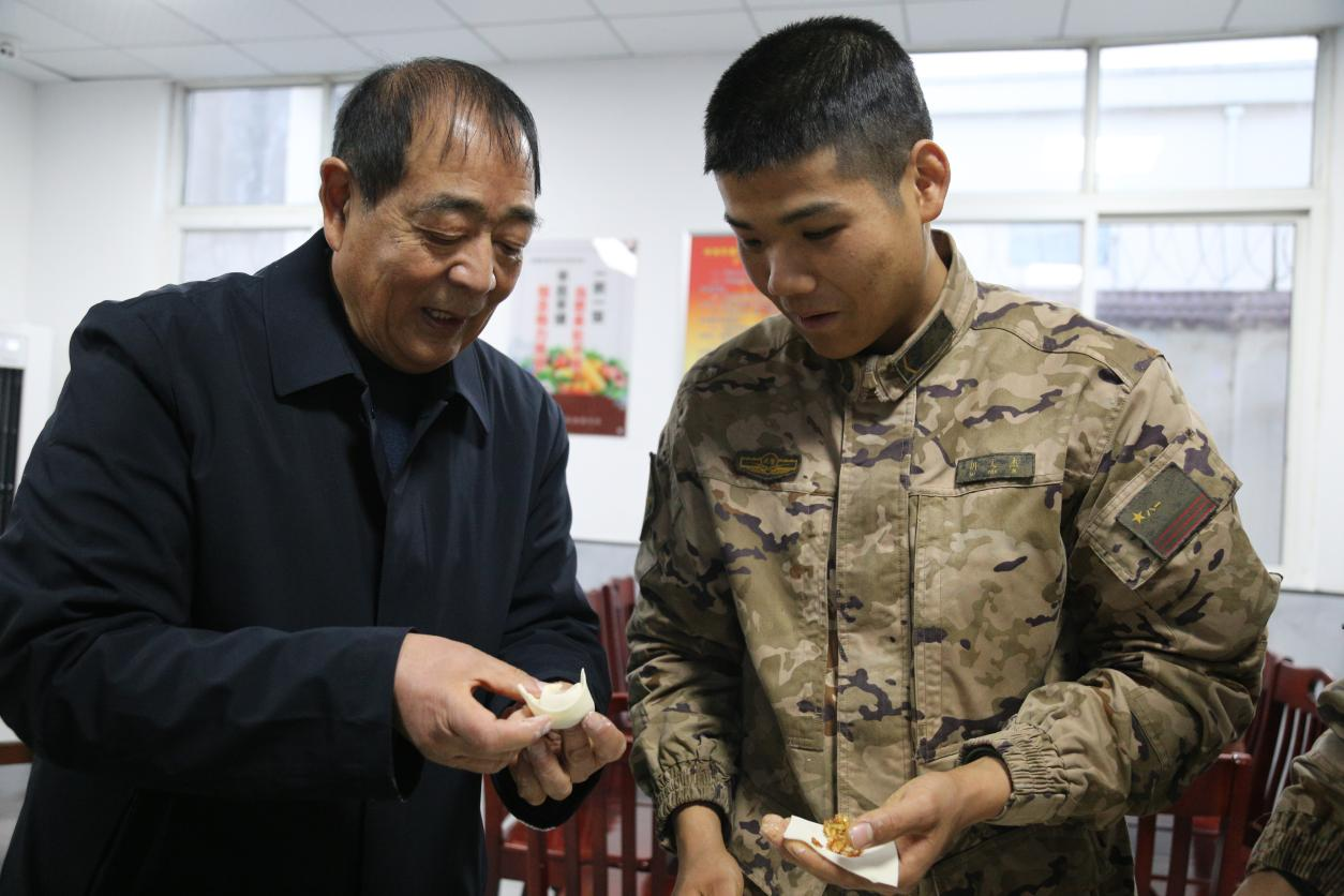 活动现场气氛热烈且温馨,关工委老同志们与战士们共同唱响一首首激昂的红歌,用嘹亮的歌声传递着对祖国的热爱以及对军旅生活的敬意。随后在食堂,老同志们手把手教战士们包饺子,大家在欢声笑语中共同动手包出一盘盘充满爱意与深情的温暖饺子。